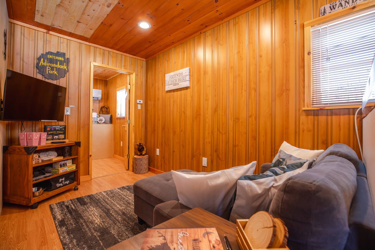 ✅ Easy Check-In Process for your rental agreement & ID verification ✅ You may opt in to purchase a non-refundable damage waiver provided by a third-party insurance company. The optional damage waiver is for stays up to 10 nights, with an additional fee per day for stays longer than 10 nights. Damage waiver purchases are optional. To make this process easy for you, we use a secure and very simple, app-free platform called Happy Guest. It is not an app, and you do not have to sign up for an account - it’s a safe and secure website. It also gives you a guest portal with all the info about the home and all of my favorite local spots. Your guest portal includes advertisements with third-party upgrades that you may want to enhance your stay. These upgrades are optional and include: Additional wood , early and late check out options. CHECK IN/OUT: 1)Early Check in or late check out is possible if we do not have a booking same day, kindly send request through the HappyGuest portal. (Subject for approval) 2) Failure to leave at scheduled check out time will result in a $250 fee. GUEST CHECK IN: 1) Entry will be by keyless entry. 2) Guest check in screening will occur via security camera. 3) Please make sure the reservation accounts for the correct amount of guests and a pet (2 pet maximum) if you are bringing one. WILDLIFE Please note: As our home is nestled in the Adirondacks, it’s possible to see or hear local wildlife such as mice, chipmunks, squirrels, deer, raccoons, or even the occasional bear. We do our best to prevent indoor visits with routine pest control, but nature is all around here! HOUSE SUPPLIES We provide a starter supply of essentials, including dish pods, laundry detergent, paper towels, garbage bags, and toilet paper, to help you settle in comfortably. We kindly recommend bringing additional items to ensure you have everything you need throughout your visit or for longer stays and larger groups. We do not supply mid-stay if you are with us for more than 3 days. Please plan accordingly to purchase some of your own items. TV Streaming service logins are not provided. wi-fi / phone service This can be spotty at times due to the area / secluded location FIREPIT 1) Wood or fire starter equipment is not provided, if you would like a shipment prior to arrival for fire pit use please check the HappyGuest portal to order. pit use please message us to arrange for you. 2) Fire pit must be covered at all times when not in use. 3) Please ensure fire is not left on unattended or overnight. PROPERTY SERVICE/ MAINTENANCE 1) Please note Lawn Services or maintenance may come during your stay. We ask for your cooperation during this time to ensure the beauty of the home and nature around you! lol