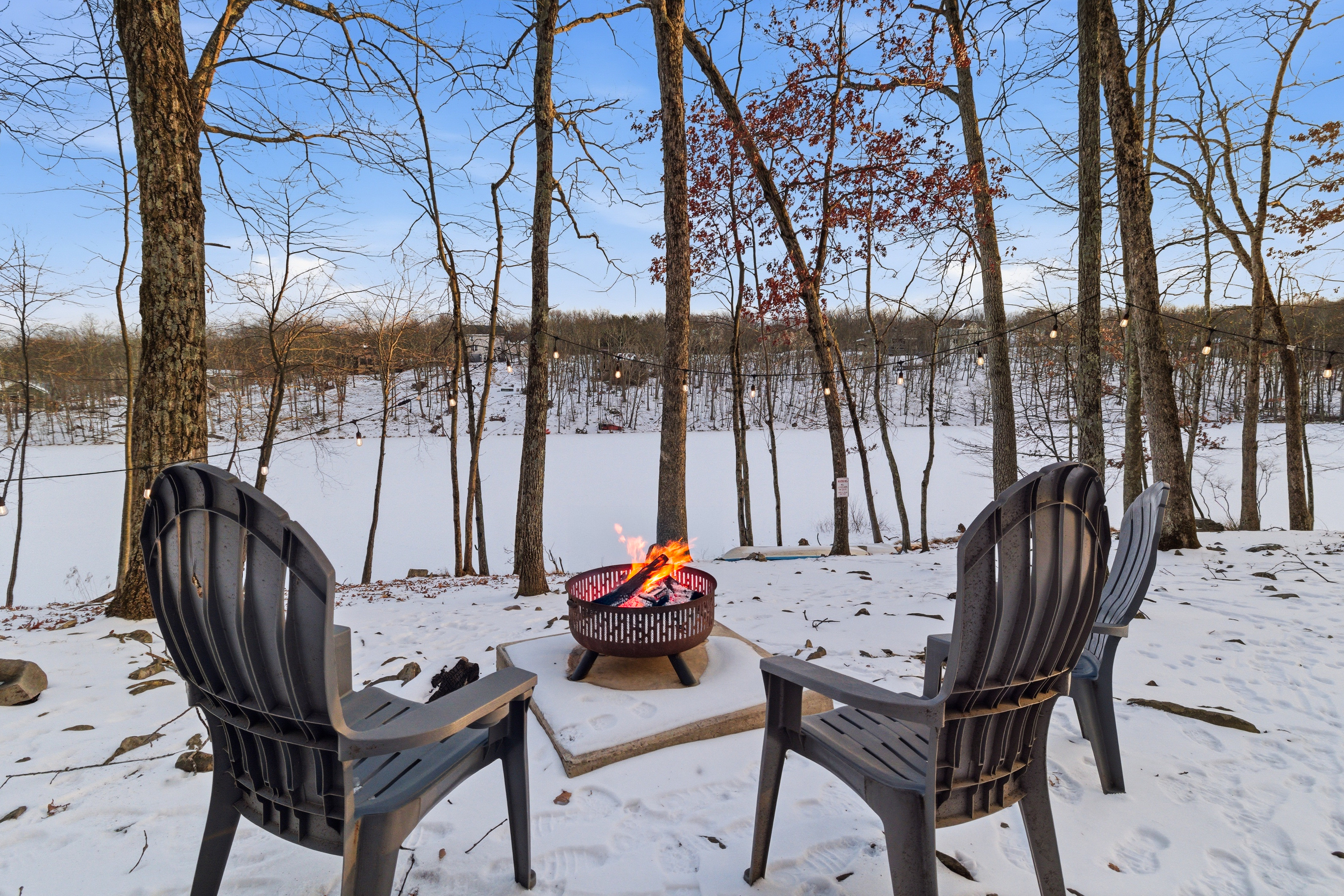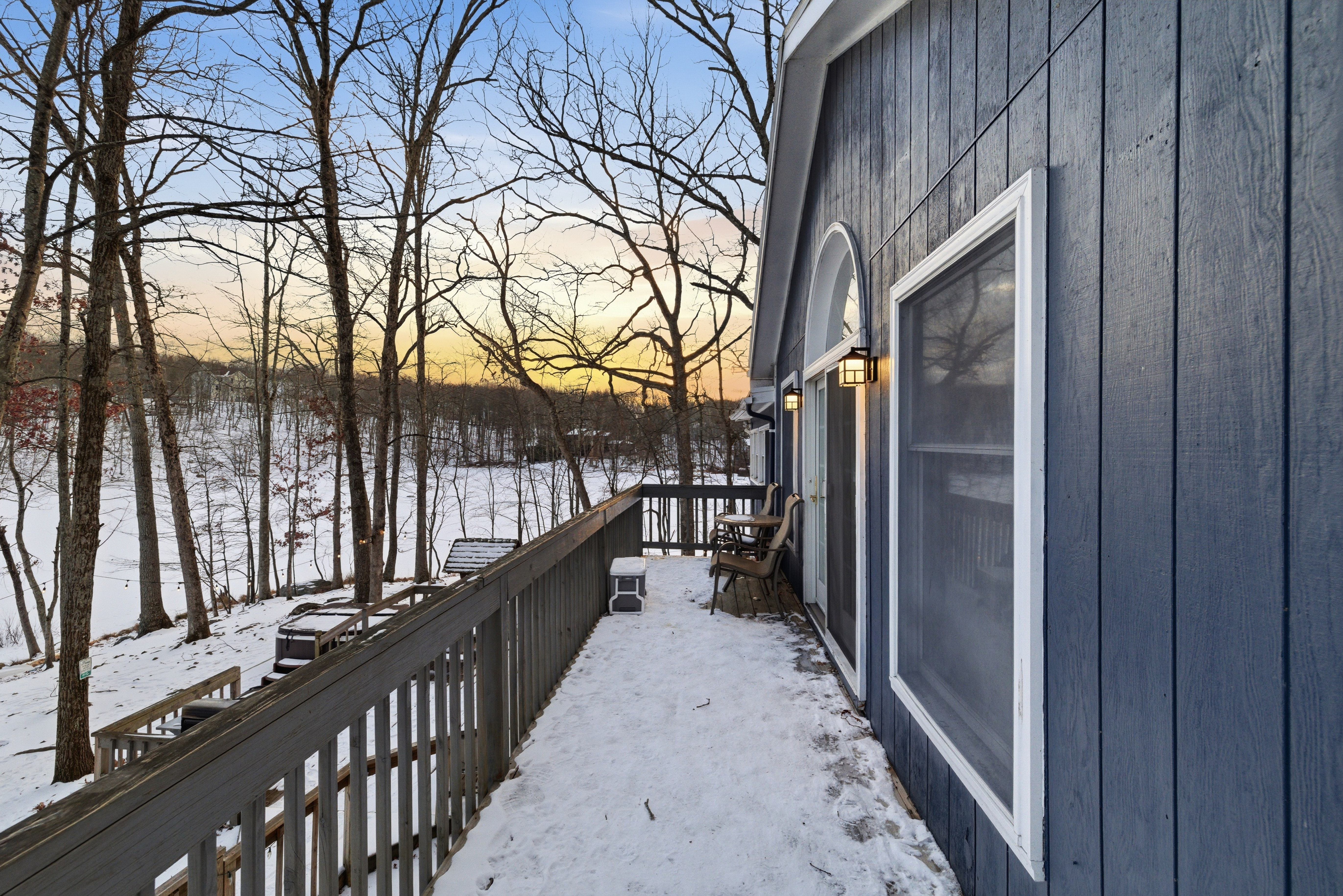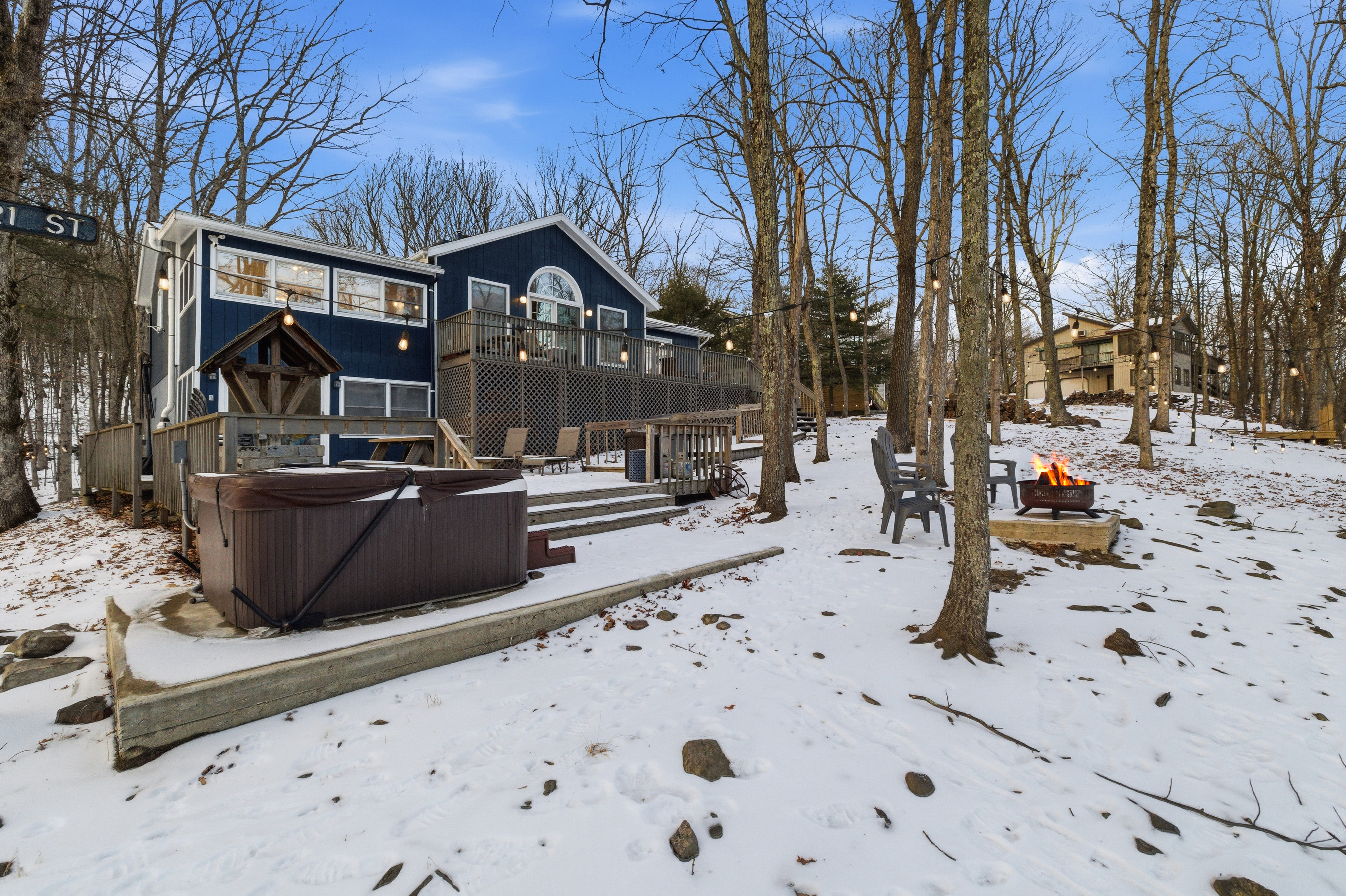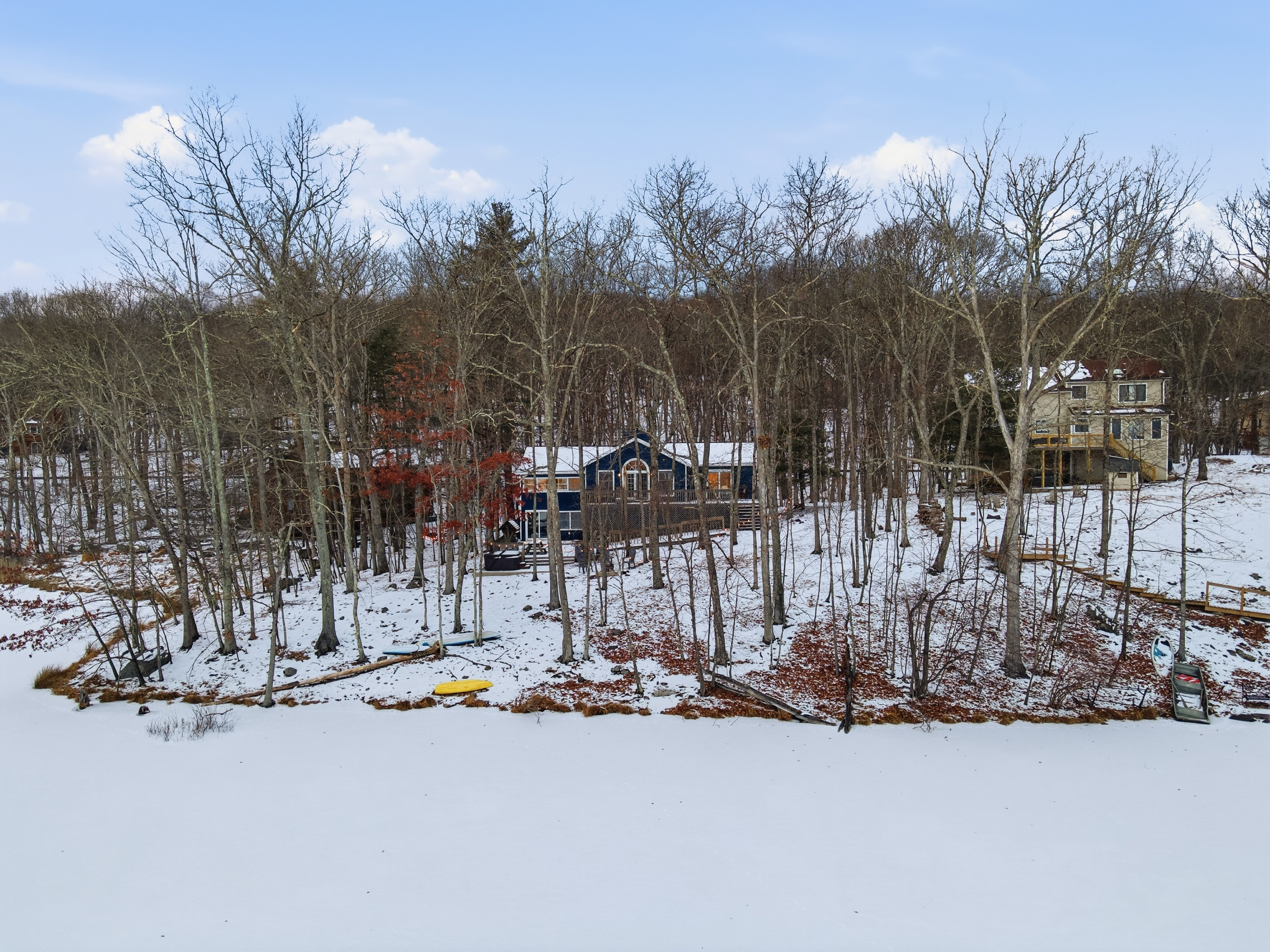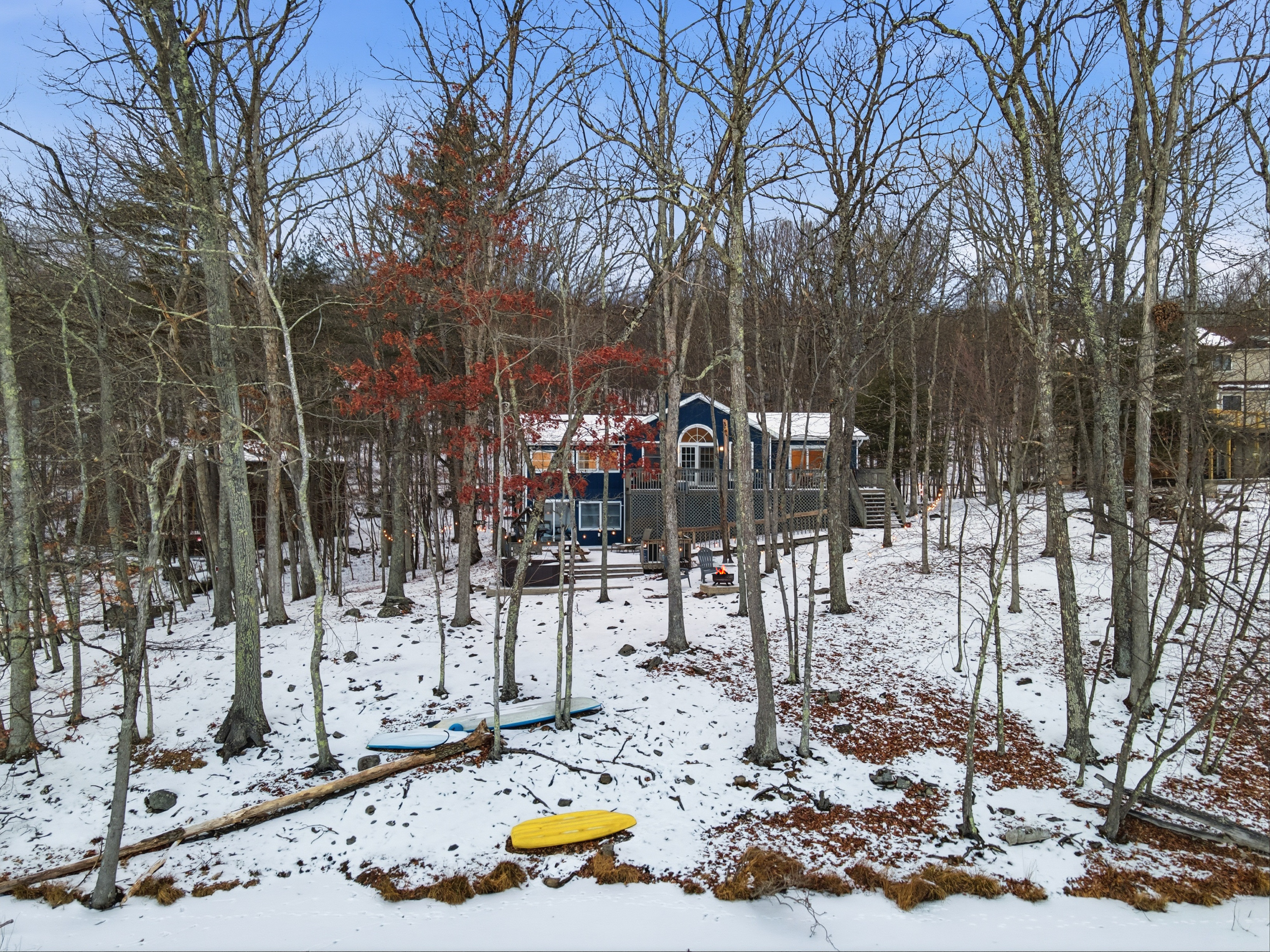 Welcome to Lakeside Drive Escape, a 3,000 sq ft lakeside retreat set on nearly an acre of wooded serenity within the Pocono Mountains. With expansive indoor and outdoor spaces, private lake access, and thoughtful amenities throughout, this home is designed for guests seeking peace, comfort, and meaningful time together. Whether you’re escaping the city for a long weekend, reconnecting with loved ones, or simply craving quiet mornings and restorative evenings, Lakeside Soul Spa Lodge offers space to slow down—without sacrificing comfort. This home is ideal for families, and groups looking to unplug while staying close to the region’s best outdoor experiences. With 5 bedrooms and 3 full bathrooms and additional bonus rooms across two levels, the home offers generous gathering spaces alongside quiet corners for rest and reflection. Central A/C and heat, ample parking, and complimentary access to community amenities make your stay effortless from arrival to departure. Ideal For Long-weekend escapes from the New York City, Philadelphia or Washington DC Families and friends who value togetherness without crowds Guests seeking quiet, nature, and comfort Inside the Lodge The interiors are warm, open, and intentionally designed for connection and calm. A fully equipped, open-concept kitchen ideal for shared meals Inviting living and dining areas for conversation and unhurried evenings A finished lower level with a game room featuring ping pong, foosball, arcade games (Ms. Pac-Man, basketball), poker table, board games, karaoke, and a TV, perfect for relaxed evenings after a day outdoors. Cozy bedrooms with beds, comfortable matresses, fresh linens, and updated bathrooms Fast Wi-Fi and smart TVs Ground-floor laundry with washer/dryer, detergent This is a home meant for both togetherness and privacy—spaces to gather, and spaces to retreat. Outside & Lakeside Living Step outside and let the pace soften. Nearly 1,000 sq ft of patio space for morning coffee, yoga, or evening wine A hot tub overlooking the lake Fire pit —perfect for quiet nights under the stars BBQ grill for relaxed outdoor meals Hammocks, picnic table, and lakeside seating for slow afternoons Enjoy private lake access with three kayaks (2 single, 1 tandem; available Memorial Day–Labor Day). Life vests for adults and children are provided. Fishing is permitted on a catch-and-release basis—bring your own gear. A Gated, Amenity Rich Community Lakeside Soul Spa Lodge is located within the private, gated community of Penn Estates in East Stroudsburg, offering complimentary seasonal access to shared amenities: Outdoor pools (Memorial Day–Labor Day weekends only; max 10 passes) Tennis, volleyball, and basketball courts Open fields and picnic areas Thoughtfully Provided Amenities To ensure a seamless stay, we provide: One case of water upon arrival Linens for all beds and one bath towel per guest Hand towels, bath rugs, toiletries, hair dryers in each bathroom Fully stocked kitchen essentials including dish soap, dishwasher detergent, paper towels, coffee maker with coffee, tea, sugar, filters, Instant Pot, and basic spices Cleaning supplies, vacuum, trash and recycling supplies