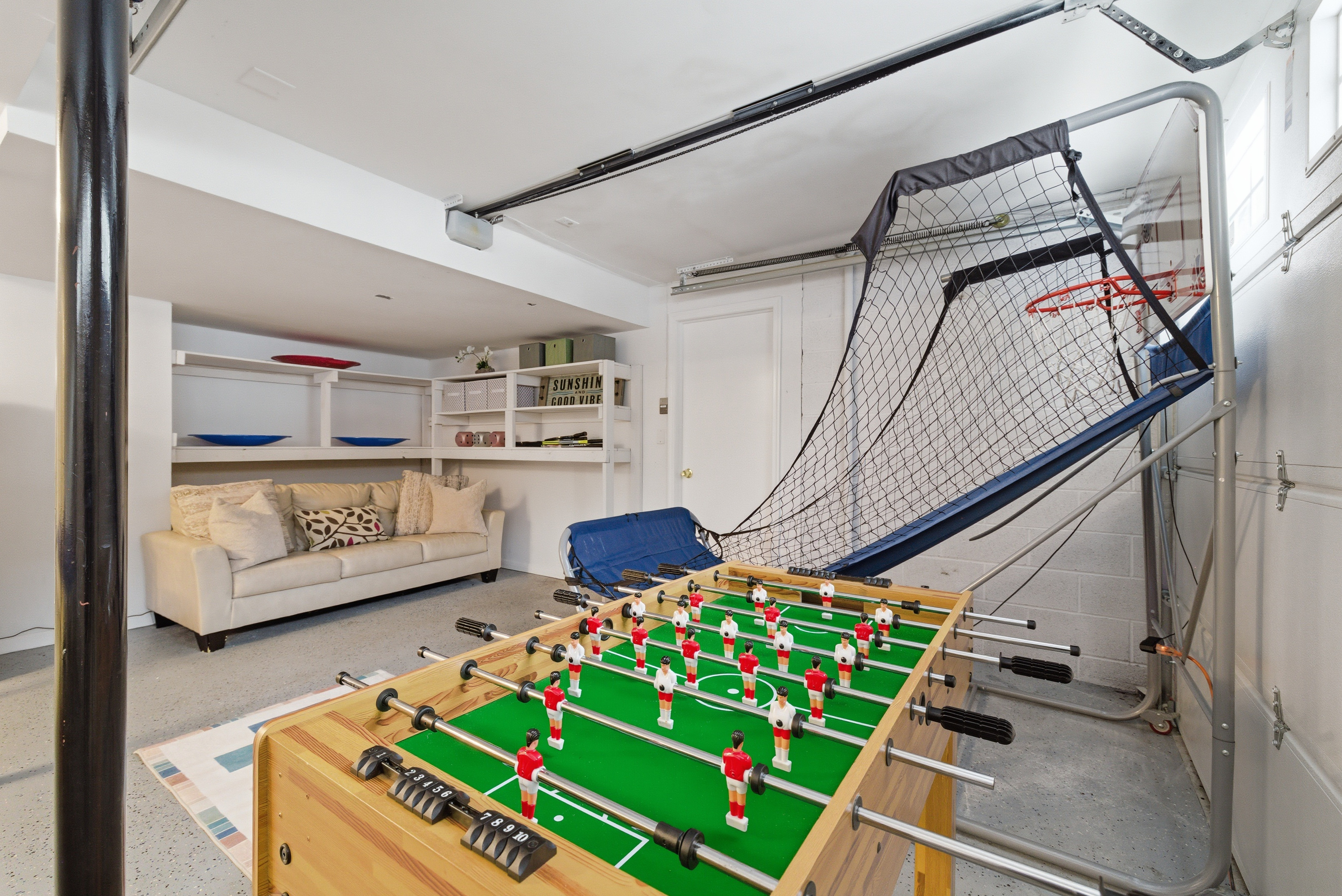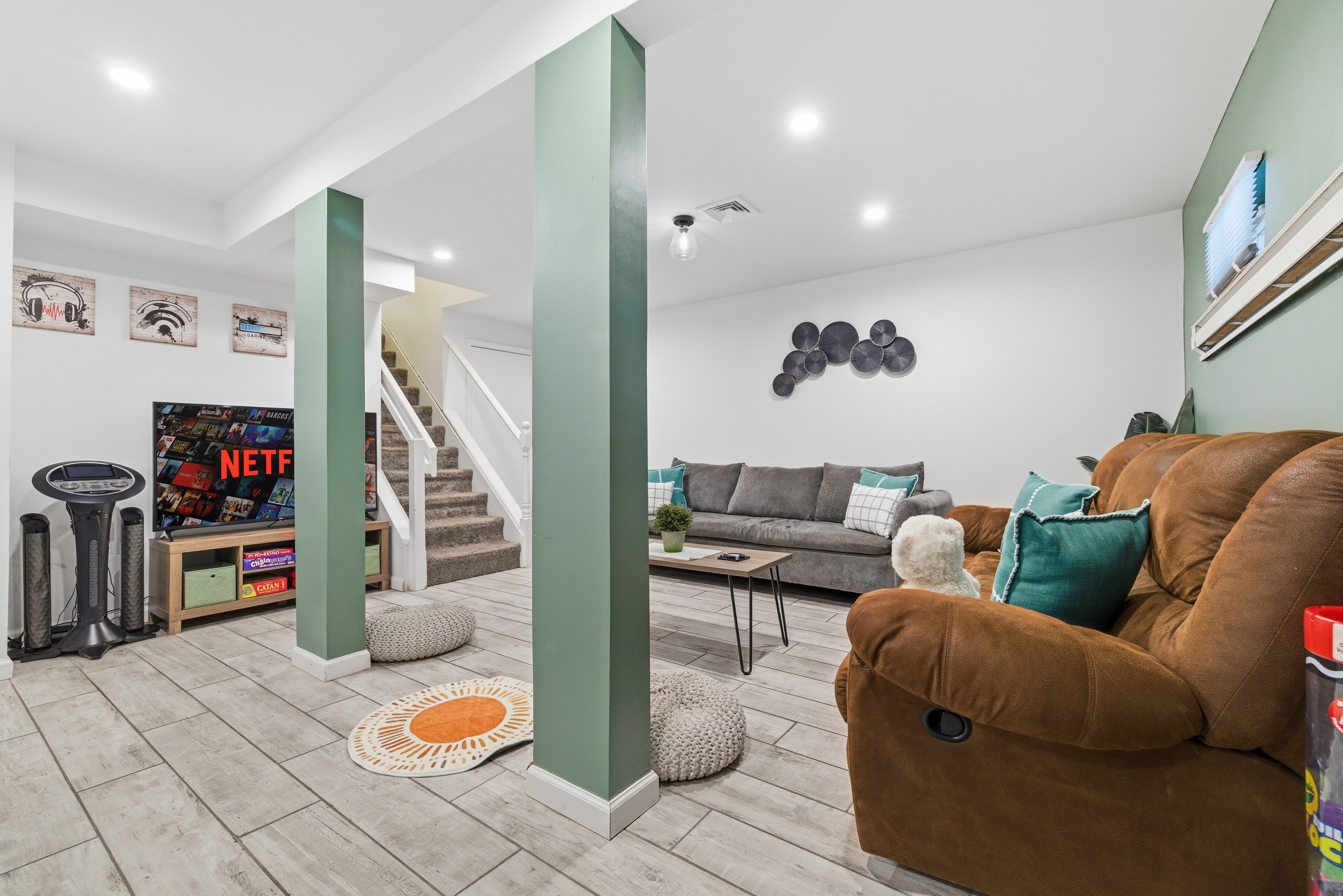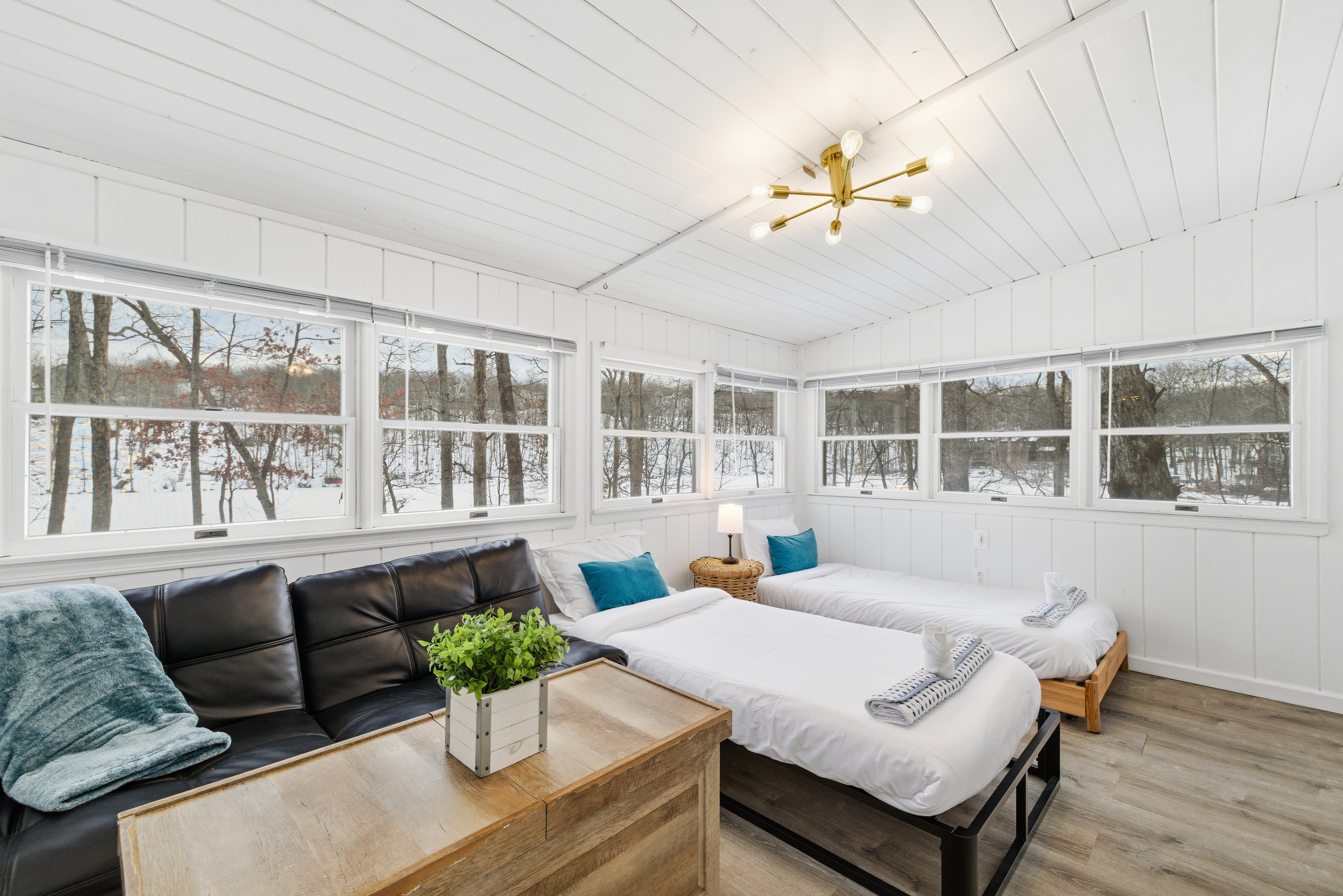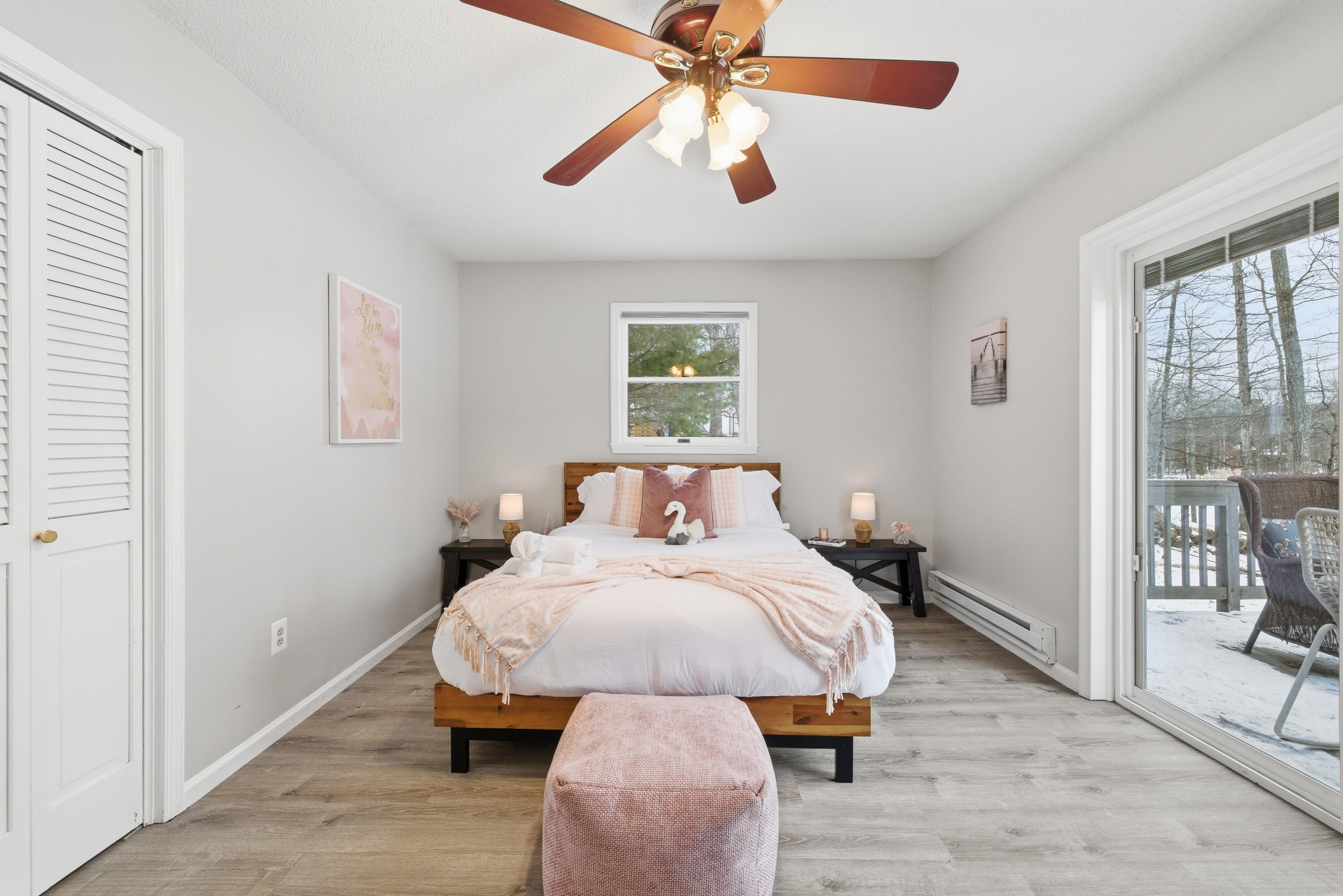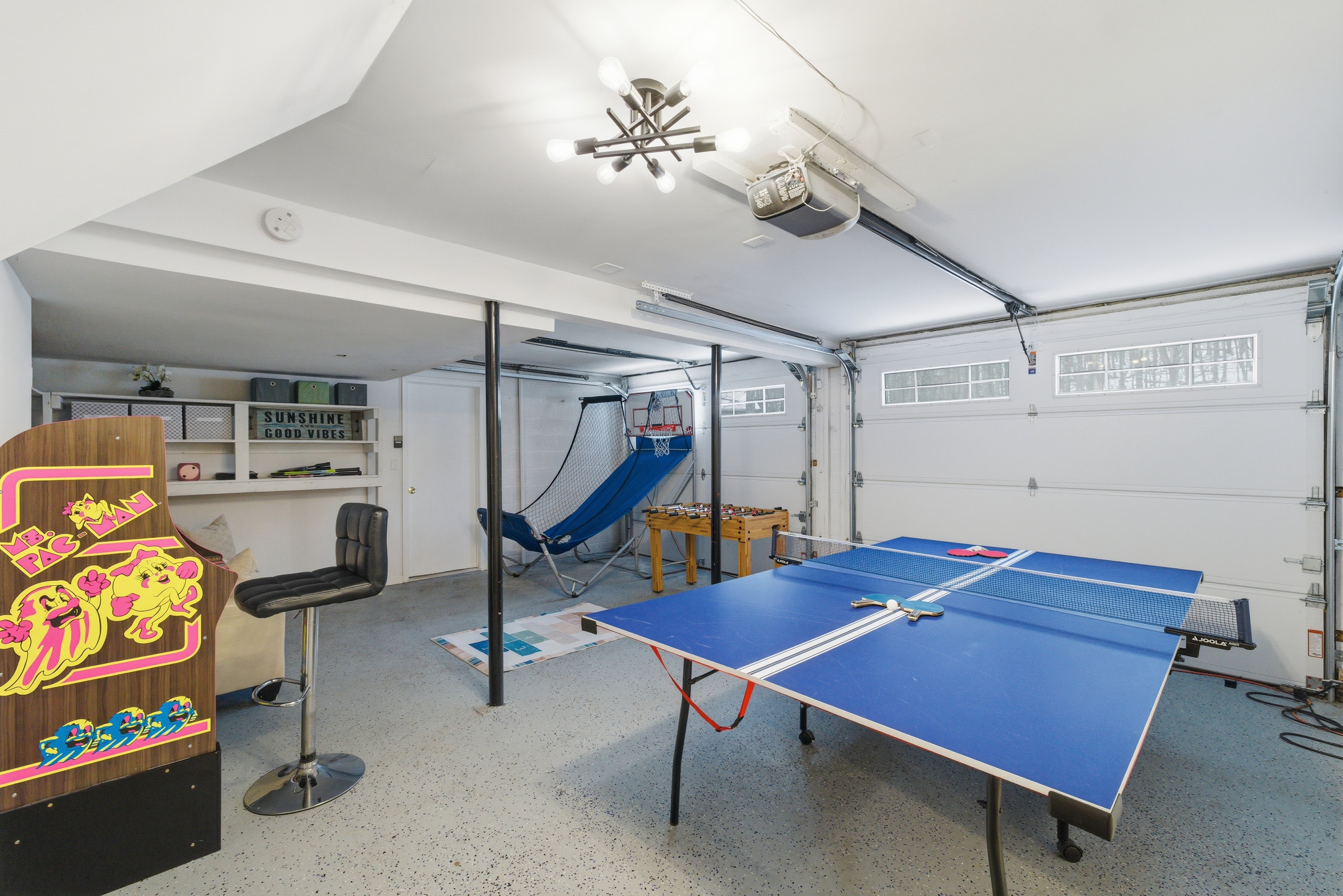 Welcome to Lakeside Drive Escape, a 3,000 sq ft lakeside retreat set on nearly an acre of wooded serenity within the Pocono Mountains. With expansive indoor and outdoor spaces, private lake access, and thoughtful amenities throughout, this home is designed for guests seeking peace, comfort, and meaningful time together. Whether you’re escaping the city for a long weekend, reconnecting with loved ones, or simply craving quiet mornings and restorative evenings, Lakeside Soul Spa Lodge offers space to slow down—without sacrificing comfort. This home is ideal for families, and groups looking to unplug while staying close to the region’s best outdoor experiences. With 5 bedrooms and 3 full bathrooms and additional bonus rooms across two levels, the home offers generous gathering spaces alongside quiet corners for rest and reflection. Central A/C and heat, ample parking, and complimentary access to community amenities make your stay effortless from arrival to departure. Ideal For Long-weekend escapes from the New York City, Philadelphia or Washington DC Families and friends who value togetherness without crowds Guests seeking quiet, nature, and comfort Inside the Lodge The interiors are warm, open, and intentionally designed for connection and calm. A fully equipped, open-concept kitchen ideal for shared meals Inviting living and dining areas for conversation and unhurried evenings A finished lower level with a game room featuring ping pong, foosball, arcade games (Ms. Pac-Man, basketball), poker table, board games, karaoke, and a TV, perfect for relaxed evenings after a day outdoors. Cozy bedrooms with beds, comfortable matresses, fresh linens, and updated bathrooms Fast Wi-Fi and smart TVs Ground-floor laundry with washer/dryer, detergent This is a home meant for both togetherness and privacy—spaces to gather, and spaces to retreat. Outside & Lakeside Living Step outside and let the pace soften. Nearly 1,000 sq ft of patio space for morning coffee, yoga, or evening wine A hot tub overlooking the lake Fire pit —perfect for quiet nights under the stars BBQ grill for relaxed outdoor meals Hammocks, picnic table, and lakeside seating for slow afternoons Enjoy private lake access with three kayaks (2 single, 1 tandem; available Memorial Day–Labor Day). Life vests for adults and children are provided. Fishing is permitted on a catch-and-release basis—bring your own gear. A Gated, Amenity Rich Community Lakeside Soul Spa Lodge is located within the private, gated community of Penn Estates in East Stroudsburg, offering complimentary seasonal access to shared amenities: Outdoor pools (Memorial Day–Labor Day weekends only; max 10 passes) Tennis, volleyball, and basketball courts Open fields and picnic areas Thoughtfully Provided Amenities To ensure a seamless stay, we provide: One case of water upon arrival Linens for all beds and one bath towel per guest Hand towels, bath rugs, toiletries, hair dryers in each bathroom Fully stocked kitchen essentials including dish soap, dishwasher detergent, paper towels, coffee maker with coffee, tea, sugar, filters, Instant Pot, and basic spices Cleaning supplies, vacuum, trash and recycling supplies