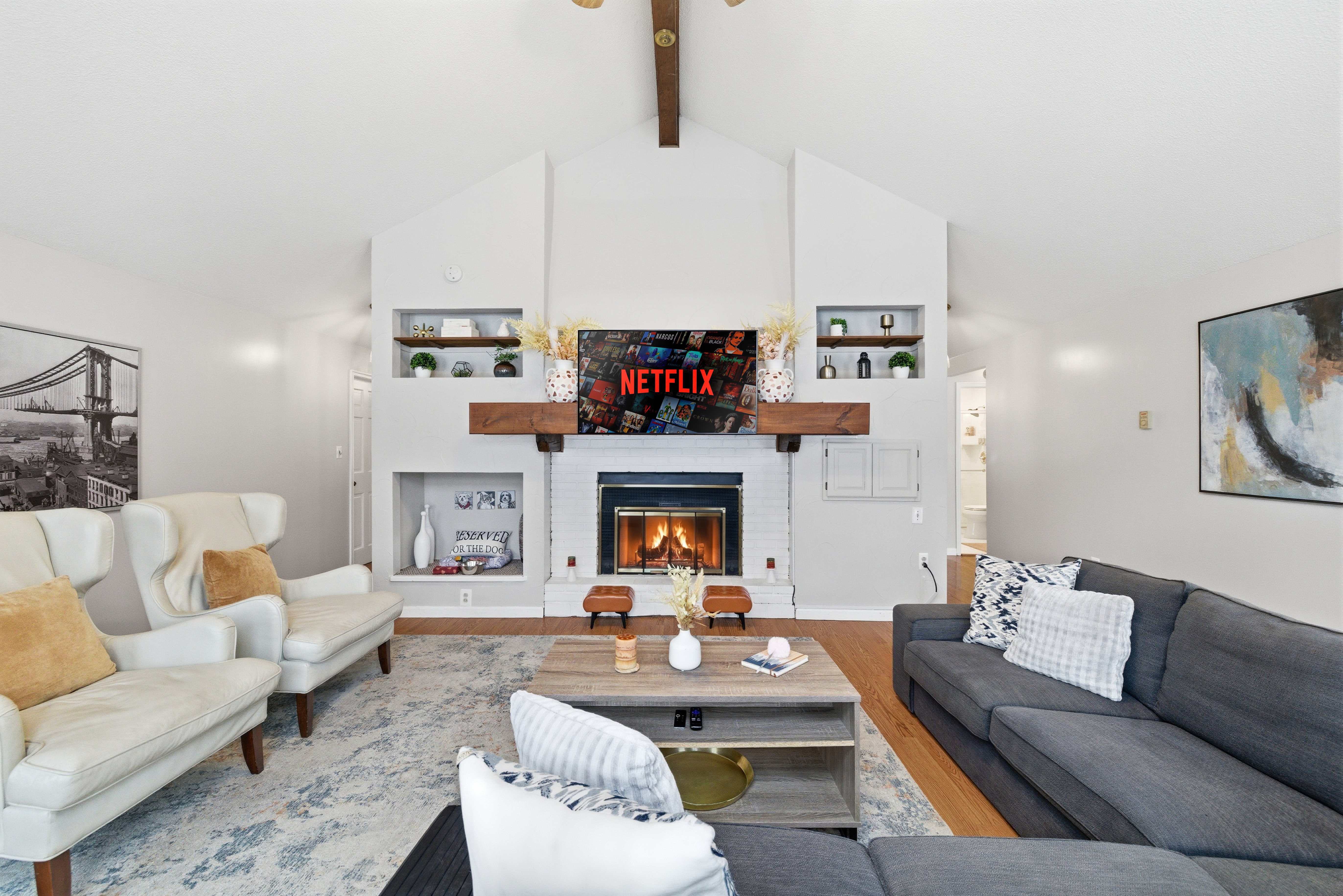 - Indoor fireplace