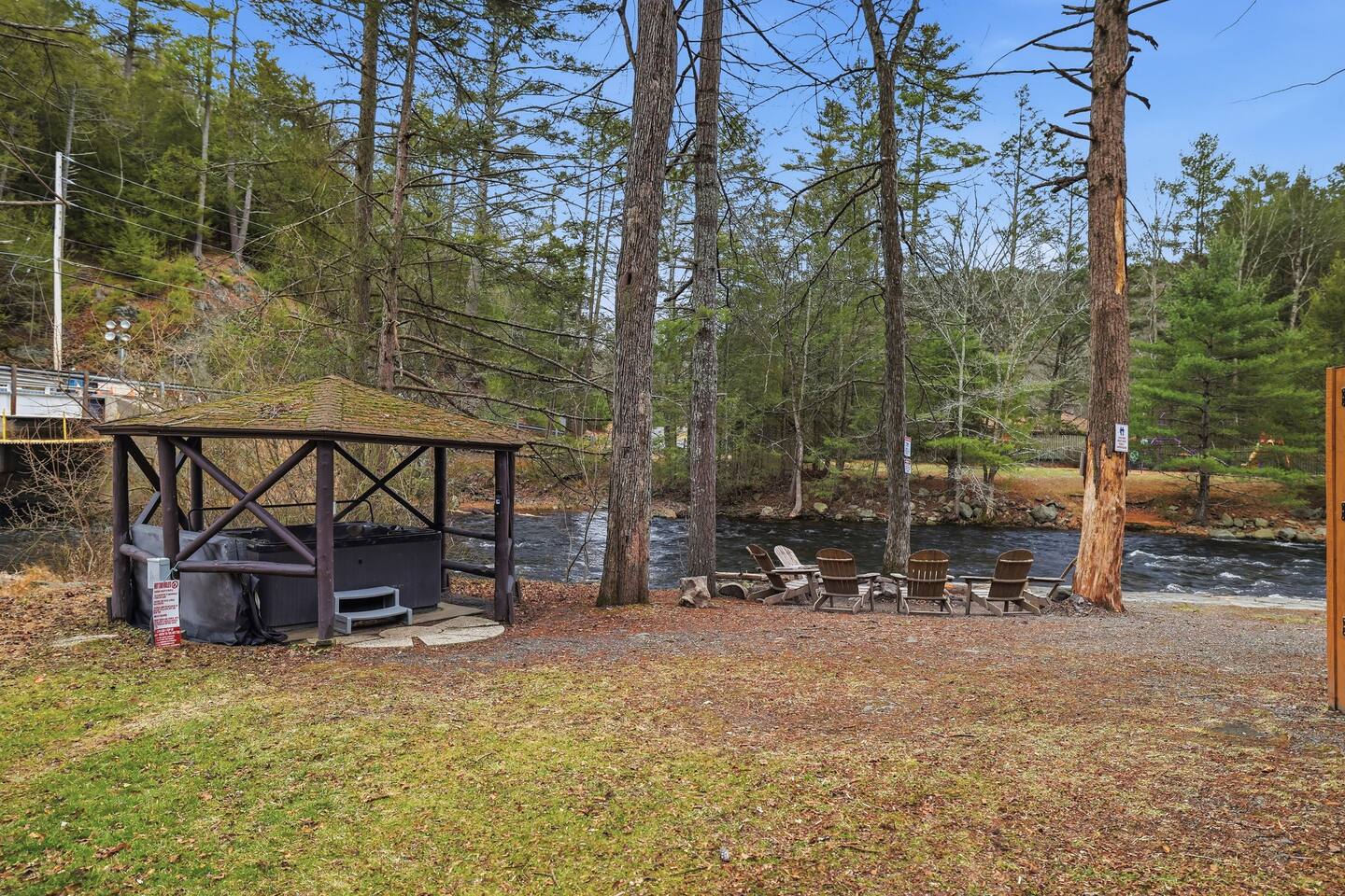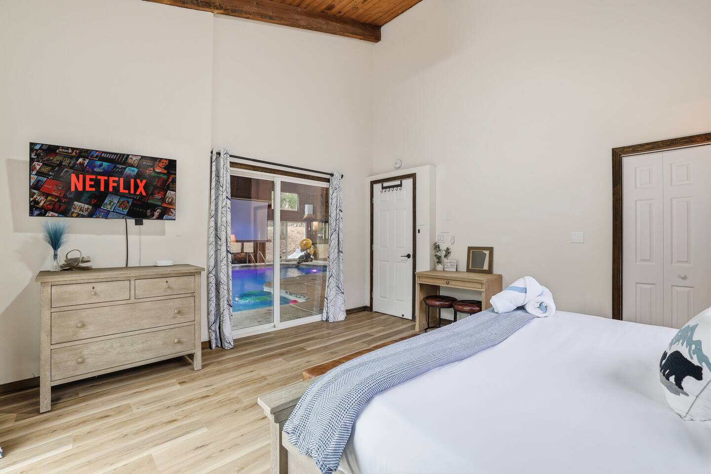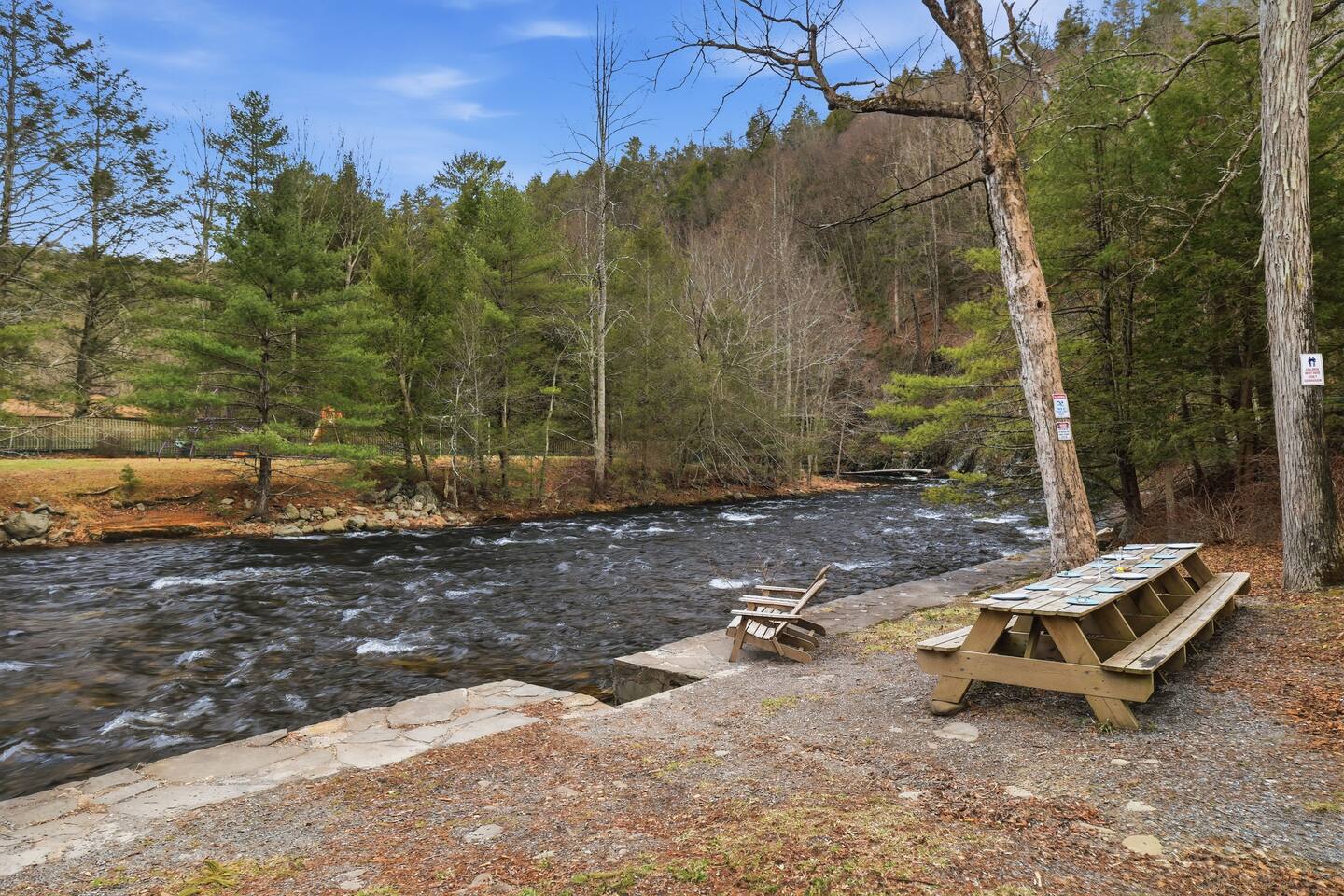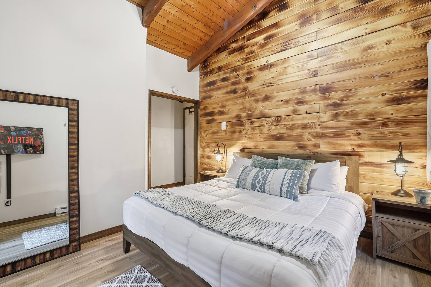 The Space The Rustic River Escape! KEY FEATURES: ☀ 6 bedrooms (perfect for large groups & families) ☀ 3 full bathrooms ☀ Fully Equipped Beautiful Kitchen with a large island for eating. ☀ Indoor Heated Pool with streaming projector ☀ Waterfront with large outdoor picnic table ☀ Outdoor Hot Tub ☀ Fire pit with Adirondack chairs ☀ BBQ ☀Pet Friendly ALL YEAR FUN *Great Wolf Lodge Indoor Water Park *Camelback Mountain Resort *Kalahari Resorts & Conventions Poconos *Delaware Water Gap National Recreation Area * Bushkill Creek *Mountain creek riding stables LAKE AND NATURE *Bushkill Creek *Delaware Water Gap National Recreation Area * Appalachian Trail access points - Hiking, biking, ATV trails - Skiing & snowboarding nearby in winter - Wildlife spotting (deer, turkey, occasional black bear) WINTER FUN *Shawnee Mountain Ski Area *Camelback Mountain Resort *Blue Mountain Resort *Jack Frost Ski Resort ☆☆ BEDROOM ☆☆ Level 2 Bedroom 1: King bed Bedroom 2: King bed Bedroom 3: 3 Twin beds Bedroom 4: 2 Twin beds Level 1 Bedroom 5: King bed Bedroom 6: Full bed ☆☆BATHROOMS☆☆ There are 3 full bathrooms stocked with all the essentials you need for the duration of your stay. ☆☆KITCHEN AND DINING☆☆ The kitchen is fully equipped with all appliances, utensils, and cookware you need to feel right at home. It also features a 16 seat dining table to enjoy meals with your family or friends. ☆☆LIVING ROOM☆☆ Our rustic living space where timeless cabin charm meets modern comfort. Soaring cathedral ceilings with exposed wood beams and skylights flood the room with natural light, while a stunning stone fireplace anchors the space for cozy evenings. Relax on the oversized leather sectional or gather with friends around the coffee table as your favorite shows play on the large smart TV. Direct access to the lake from the living room and make sure you also Make a wish on our wish tree! ☆☆LAUNDRY SPACE☆☆ Washer/dryer is accessible in the home. ☆☆POOL☆☆ ☀ 1,500+ sq ft private natatorium ☀ Heated saltwater L-shaped pool ☀ Natural light + creek-facing windows ☀ Space to swim, relax, or watch movies poolside ☆☆ OUTSIDE SPACE☆☆ ☀ 150+ ft direct Bushkill Creek frontage ☀ Mountain and water views in every direction ☀ Covered hot tub gazebo ☀ Picnic table and open yard for games & exploring ☀ BBQ ⭐⭐PROFESSIONALLY MANAGED⭐⭐ This home is managed by a luxury Pocono hospitality team dedicated to delivering 5-star stays and seamless guest experiences.