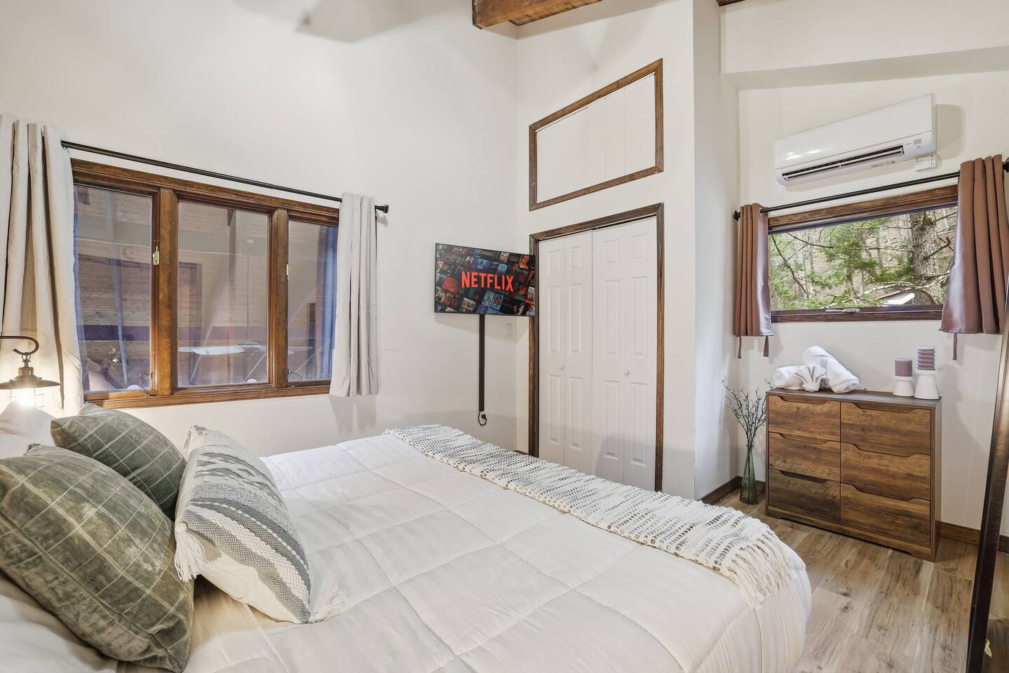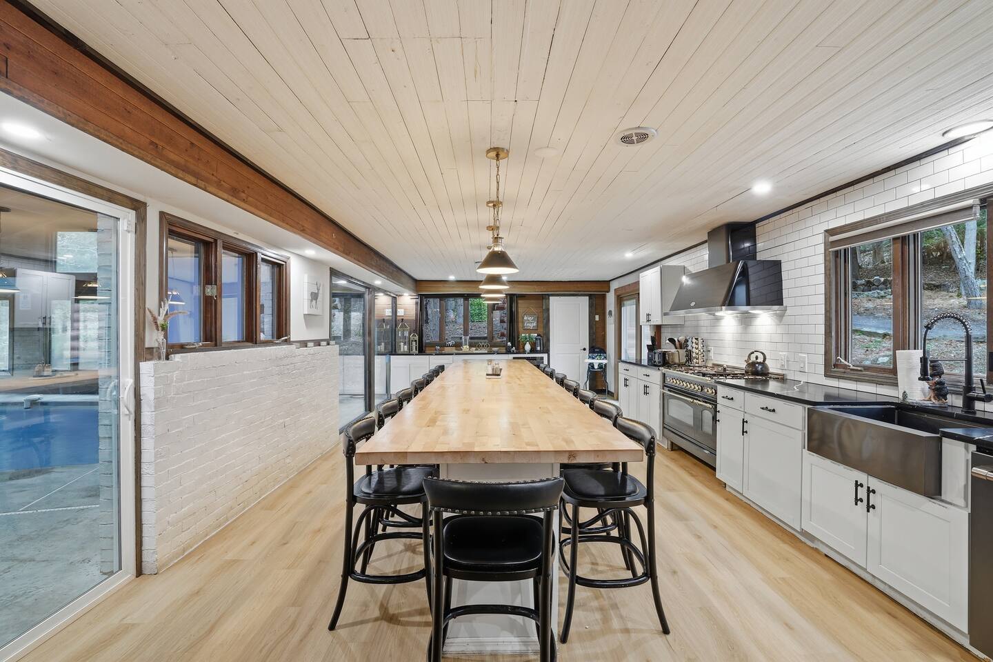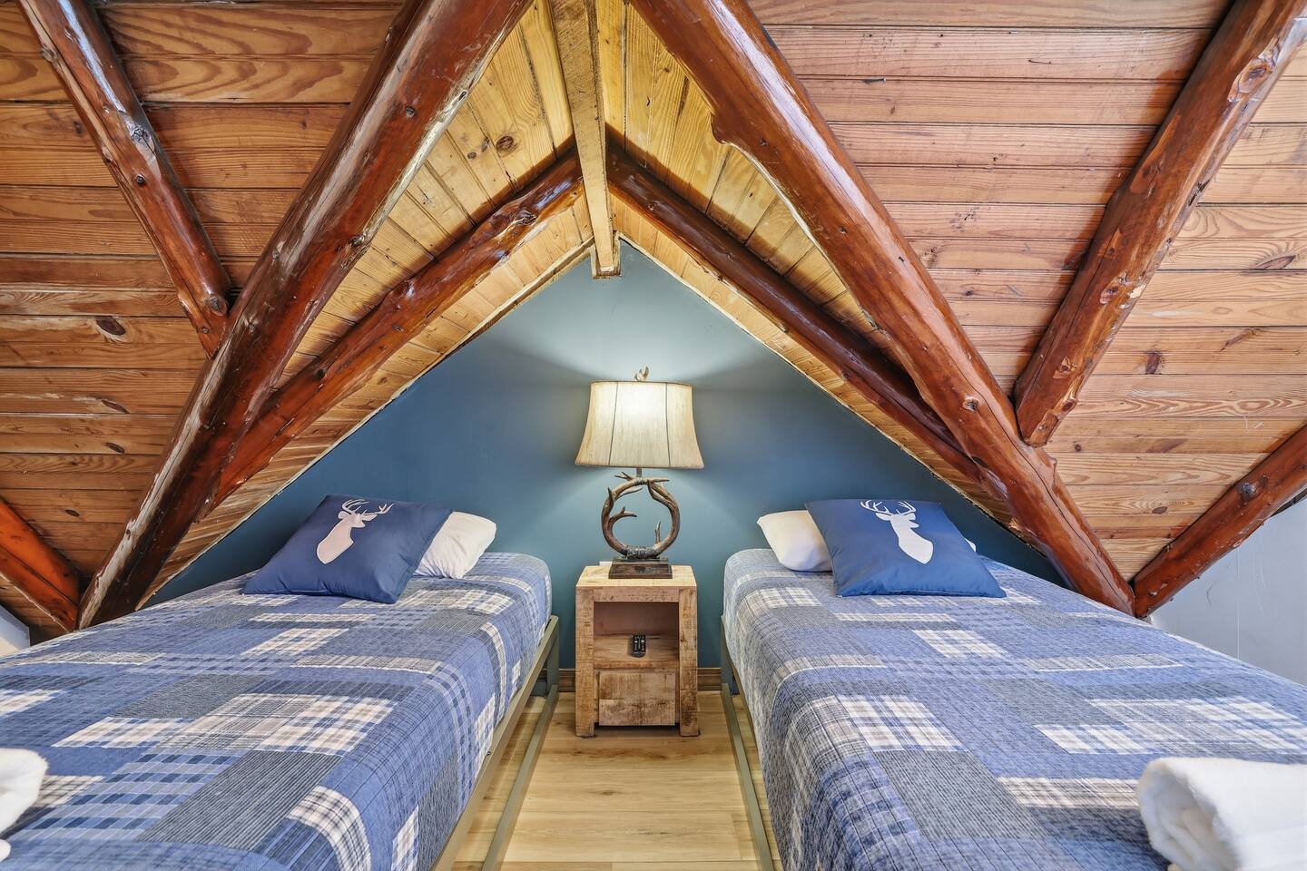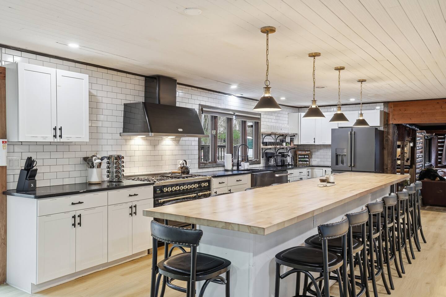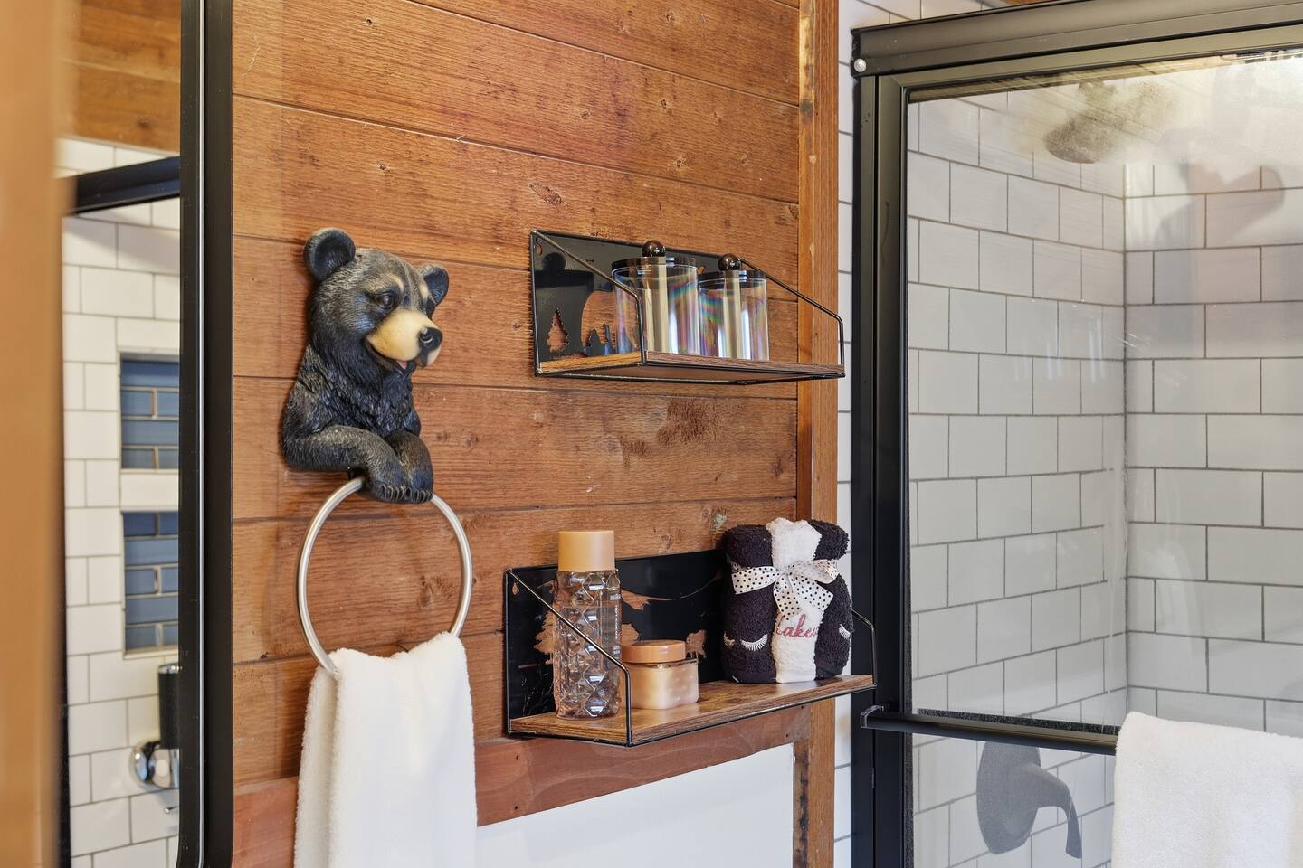 The Space The Rustic River Escape! KEY FEATURES: ☀ 6 bedrooms (perfect for large groups & families) ☀ 3 full bathrooms ☀ Fully Equipped Beautiful Kitchen with a large island for eating. ☀ Indoor Heated Pool with streaming projector ☀ Waterfront with large outdoor picnic table ☀ Outdoor Hot Tub ☀ Fire pit with Adirondack chairs ☀ BBQ ☀Pet Friendly ALL YEAR FUN *Great Wolf Lodge Indoor Water Park *Camelback Mountain Resort *Kalahari Resorts & Conventions Poconos *Delaware Water Gap National Recreation Area * Bushkill Creek *Mountain creek riding stables LAKE AND NATURE *Bushkill Creek *Delaware Water Gap National Recreation Area * Appalachian Trail access points - Hiking, biking, ATV trails - Skiing & snowboarding nearby in winter - Wildlife spotting (deer, turkey, occasional black bear) WINTER FUN *Shawnee Mountain Ski Area *Camelback Mountain Resort *Blue Mountain Resort *Jack Frost Ski Resort ☆☆ BEDROOM ☆☆ Level 2 Bedroom 1: King bed Bedroom 2: King bed Bedroom 3: 3 Twin beds Bedroom 4: 2 Twin beds Level 1 Bedroom 5: King bed Bedroom 6: Full bed ☆☆BATHROOMS☆☆ There are 3 full bathrooms stocked with all the essentials you need for the duration of your stay. ☆☆KITCHEN AND DINING☆☆ The kitchen is fully equipped with all appliances, utensils, and cookware you need to feel right at home. It also features a 16 seat dining table to enjoy meals with your family or friends. ☆☆LIVING ROOM☆☆ Our rustic living space where timeless cabin charm meets modern comfort. Soaring cathedral ceilings with exposed wood beams and skylights flood the room with natural light, while a stunning stone fireplace anchors the space for cozy evenings. Relax on the oversized leather sectional or gather with friends around the coffee table as your favorite shows play on the large smart TV. Direct access to the lake from the living room and make sure you also Make a wish on our wish tree! ☆☆LAUNDRY SPACE☆☆ Washer/dryer is accessible in the home. ☆☆POOL☆☆ ☀ 1,500+ sq ft private natatorium ☀ Heated saltwater L-shaped pool ☀ Natural light + creek-facing windows ☀ Space to swim, relax, or watch movies poolside ☆☆ OUTSIDE SPACE☆☆ ☀ 150+ ft direct Bushkill Creek frontage ☀ Mountain and water views in every direction ☀ Covered hot tub gazebo ☀ Picnic table and open yard for games & exploring ☀ BBQ ⭐⭐PROFESSIONALLY MANAGED⭐⭐ This home is managed by a luxury Pocono hospitality team dedicated to delivering 5-star stays and seamless guest experiences.