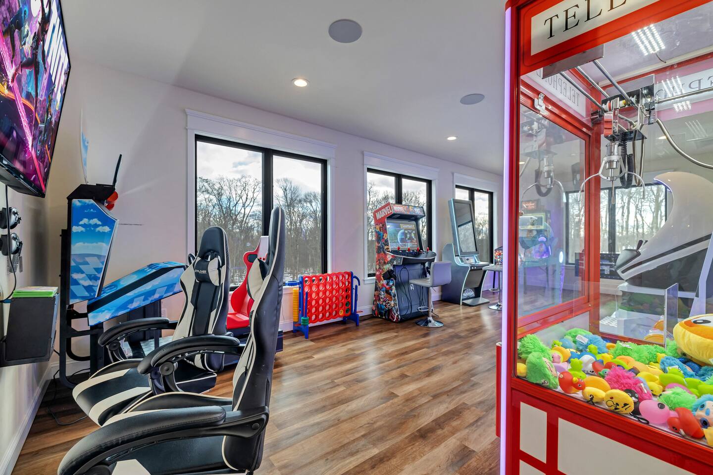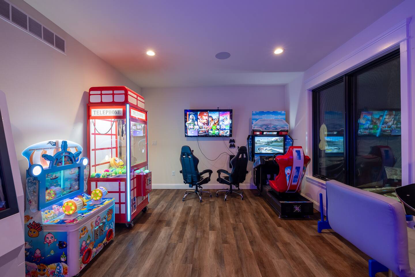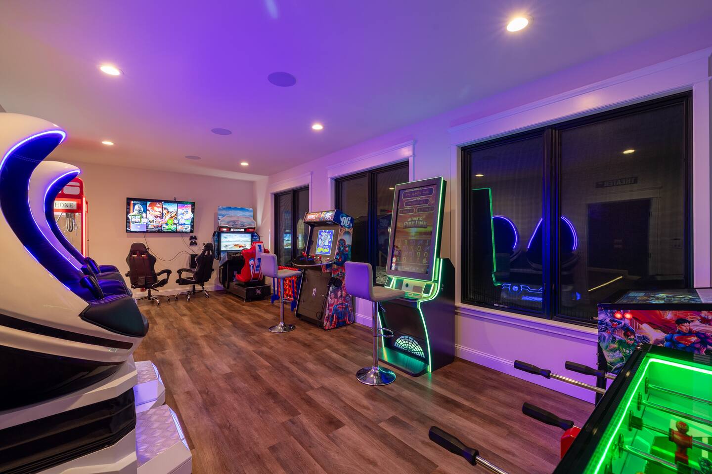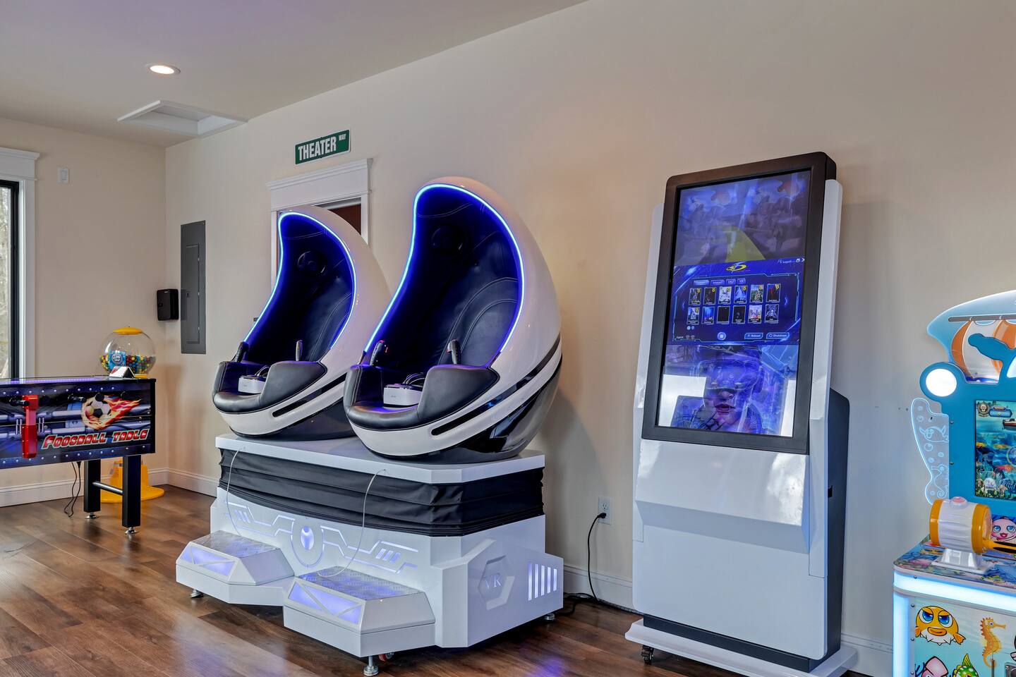 The Space The Perfect Pocono Escape! KEY FEATURES: ☀ 6 Bedroom, 6.5 Bathroom ☀ Fully Equipped Beautiful Kitchen ☀ Indoor Heated Pool and Hot tub ☀ Arcade Room (Virtual Reality, Casino, Gaming) ☀ State of the Art 2 Story Movie Theater ☀ Outdoor Hot Tub ☀ Fire pit ☀ BBQ ☀ Kids Playground & Basketball Court ☀ Pickle ball court ☀Private trail on property ☀ Universal Electric Car Charger ☀ Sonos Wireless Speaker System and so much more! ☆☆ The Perfect Pocono Escape is #1 Luxurious home in the Poconos Region! ☆☆ HALLOWEEN PARTY 🍁🎃🍂 Stop by ShawneeCraft Brewing Company for their annual Halloween Party on Friday, October 31. There will be prizes and giveaways for best costumes and mummy wrapping contest. Enjoy live music by the Sol Katana Band from 7-10 p.m. Free entry for all! Come stay at The Perfect Escape for all year round fun! Winter Fun: * Big Boulder Mountain * Jack Frost Ski Resort * Camelback Mountain Resort & Snow tubing Make a Splash: * Split Rock Resort * Camelback Outdoor waterpark * Kalahari Resort * Great Wolf Lodge * Aquatopia All Year Fun * Pocono Outdoor Adventure * Stock Car Racing * Pohopoco Tract ATV Trail * Tippmann Castle * Pocono Mountains * Wonderland Madhouse (mini-golf, escape the rooms, wine tasting) Lake & Nature Livin: * Big Boulder Lake * Austin T. Blakeslee Natural Area * Lake Harmony * Towamensing Trails * Hawk Falls * Hickory Run State Park * Pine Tree Lake * Stillwater Lake * Buttermilk Falls at Bear Creek Preserve * Summit Lake * Tobyhanna State Game Park ☆☆ BEDROOM ☆☆ First Level: Bedroom 1: 1 King Bed (master with private en suite) Bedroom 2: 2 Double Beds Bedroom 3: 3 Twin Bunk Beds (with 1 trundle) Second Level: Bedroom 4: 1 King Bed (master with private en suite) Bedroom 5: 2 Double Beds Bedroom 6: 3 Twin Bunk Beds (with 1 trundle) ☆☆BATHROOMS☆☆ There are 6.5 bathrooms stocked with all the essentials you need for the duration of your stay. The master bedrooms (2) feature custom made walk in showers featuring six body sprays and a bath tub. ☆☆KITCHEN & LOUNGE☆☆ The kitchen is fully equipped with all appliances, utensils, and cookware you need to feel right at home. It also features a 20 seat dinning table to enjoy meals with your family or friends. ☆☆LIVING ROOM☆☆ Our beautifully appointed living room boasting an impressive 83-inch 4K TV the ultimate centerpiece for entertainment enthusiasts. Sink into plush sofas and immerse yourself in your favorite shows or movies. Whether it's a movie night with friends or a relaxing evening in, our spacious living area promises an unforgettable entertainment experience. ☆☆GAME ROOM ☆☆ State of the art Arcade and game room. Prepare for a gaming extravaganza in our game room! Dive into the thrill of the 4K pinball machine or explore virtual realms in our 2-seat VR setup. Challenge friends to intense matches of foosball , race to victory in the latest car racing game, and immerse yourself in the gaming universe with the newest Xbox machine. Upstairs also features a pool table and air hockey. ☆☆MOVIE THEATER ☆☆ Entertainment reaches new heights with a state-of-the-art, cutting-edge 22-seat movie theater. Immerse yourself in cinematic magic on an impressive 18-foot screen, complemented by vibrating seats, all housed within a captivating two-story room. Whether it's an action-packed blockbuster or a heartwarming classic, the theater promises an unparalleled viewing experience for all. ☆☆LAUNDRY SPACE☆☆ Washer/dryer is accessible in the home. ☆☆ OUTSIDE SPACE☆☆ The outside space features a fire pit and hot tub where you can enjoy roasting marshmallows or hang around sharing stories with your friends or family. 2 BBQ’s , Half court basketball court , ping pong, corn hole, pickle ball court and kids Playground! There is also a private trail that is approximately 10 mins long that loops back around the property. Universal EV Charger is also on the property.