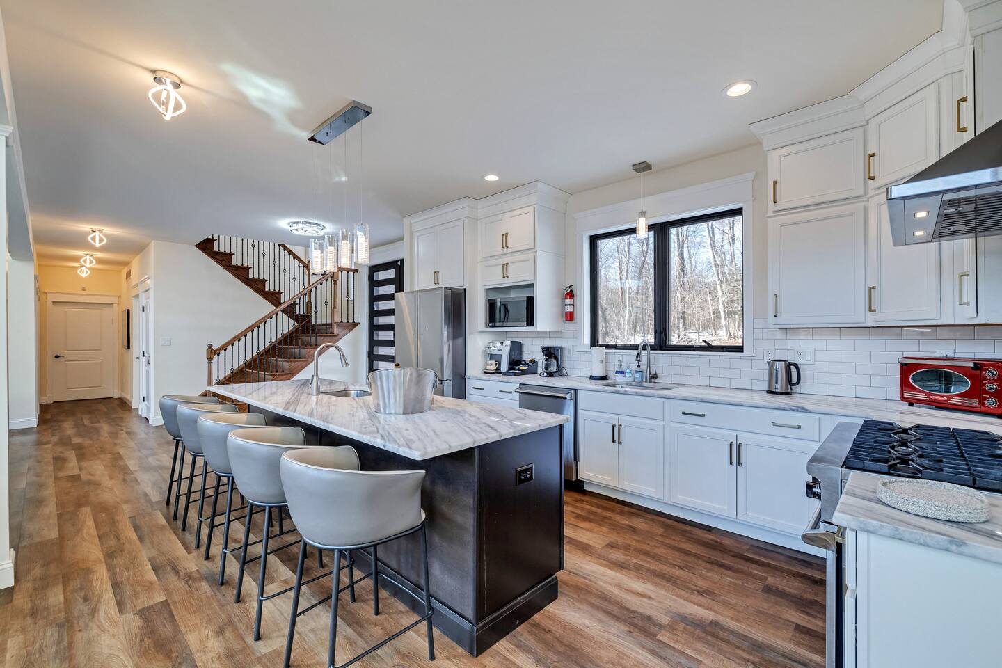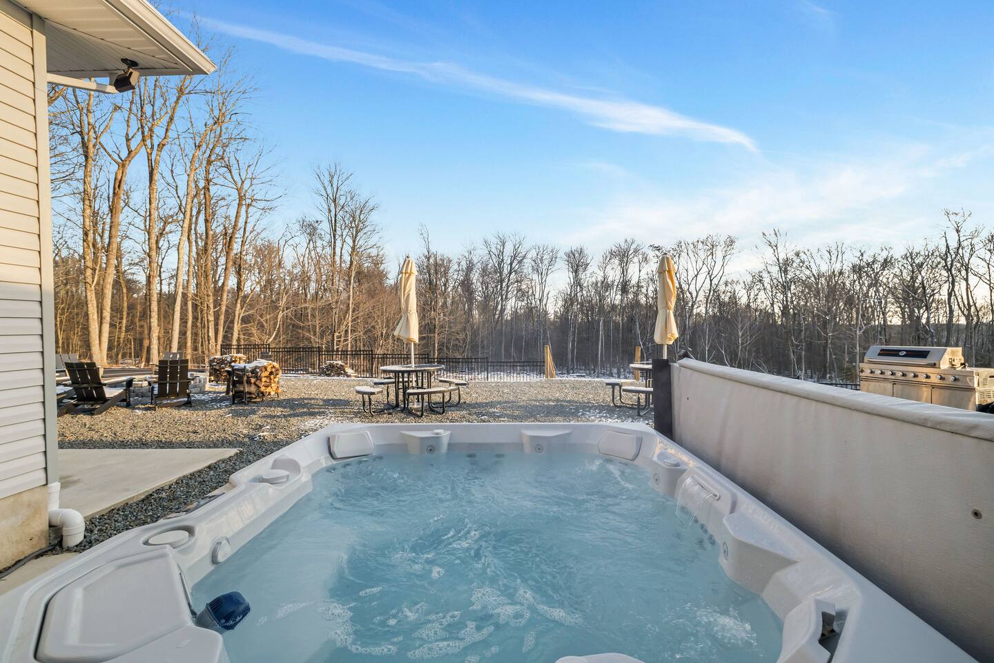 Minimum Age Rental = 25 ✅ Easy Check-In Process for your rental agreement & ID verification ✅ You may opt in to purchase a non-refundable damage waiver provided by a third-party insurance company. The optional damage waiver is for stays up to 10 nights, with an additional fee per day for stays longer than 10 nights. Damage waiver purchases are optional. To make this process easy for you, we use a secure and very simple, app-free platform called Happy Guest. It is not an app, and you do not have to sign up for an account - it’s a safe and secure website. It also gives you a guest portal with all the info about the home and all of my favorite local spots. Your guest portal includes advertisements with third-party upgrades that you may want to enhance your stay. These upgrades are optional and include: Additional wood , check in and check out options, privat chef and butler services, additional house keeping. CHECK IN/OUT: * Late check out fee will apply if cleaners are awaiting to get inside the property to clean for the next guests coming in. GUEST CHECK IN: * Entry will be by keyless entry. * Guest check in screening will occur via security camera. * Please make sure the reservation accounts for the correct amount of guests and pets (2 pet maximum) if you are bringing one. WILDLIFE Please note: As our home is nestled in the Poconos, it’s possible to see or hear local wildlife such as mice, chipmunks, bugs, spiders, squirrels, deer, raccoons, or even the occasional bear. We do our best to prevent indoor visits with routine pest control, but nature is all around here! HOUSE SUPPLIES We provide a starter supply of essentials, including dish pods, laundry detergent, paper towels, garbage bags, and toilet paper, to help you settle in comfortably. We kindly recommend bringing additional items to ensure you have everything you need throughout your visit or for longer stays and larger groups. We do not supply mid-stay if you are with us for more than 3 days. Please plan accordingly to purchase some of your own items. SMART TV Streaming service logins are not provided, please feel free to use your personal login for these devices. GAME ROOM 1) All games are free with the exception of the gum ball machine and claw machine. Quarters are needed. 2) xbox console and smart tvs need your own login to access the games. POOL Life jackets/floaties are not provided. Please bring if needed FIREWOOD Firewood is not provided if you would like to purchase prior to arrival to have on site let us know and we can arrange this PROPERTY SERVICE/ MAINTENANCE * Please note Lawn Services or routine maintenance may come during your stay. We ask for your cooperation during this time to ensure the beauty of the home and nature around you!