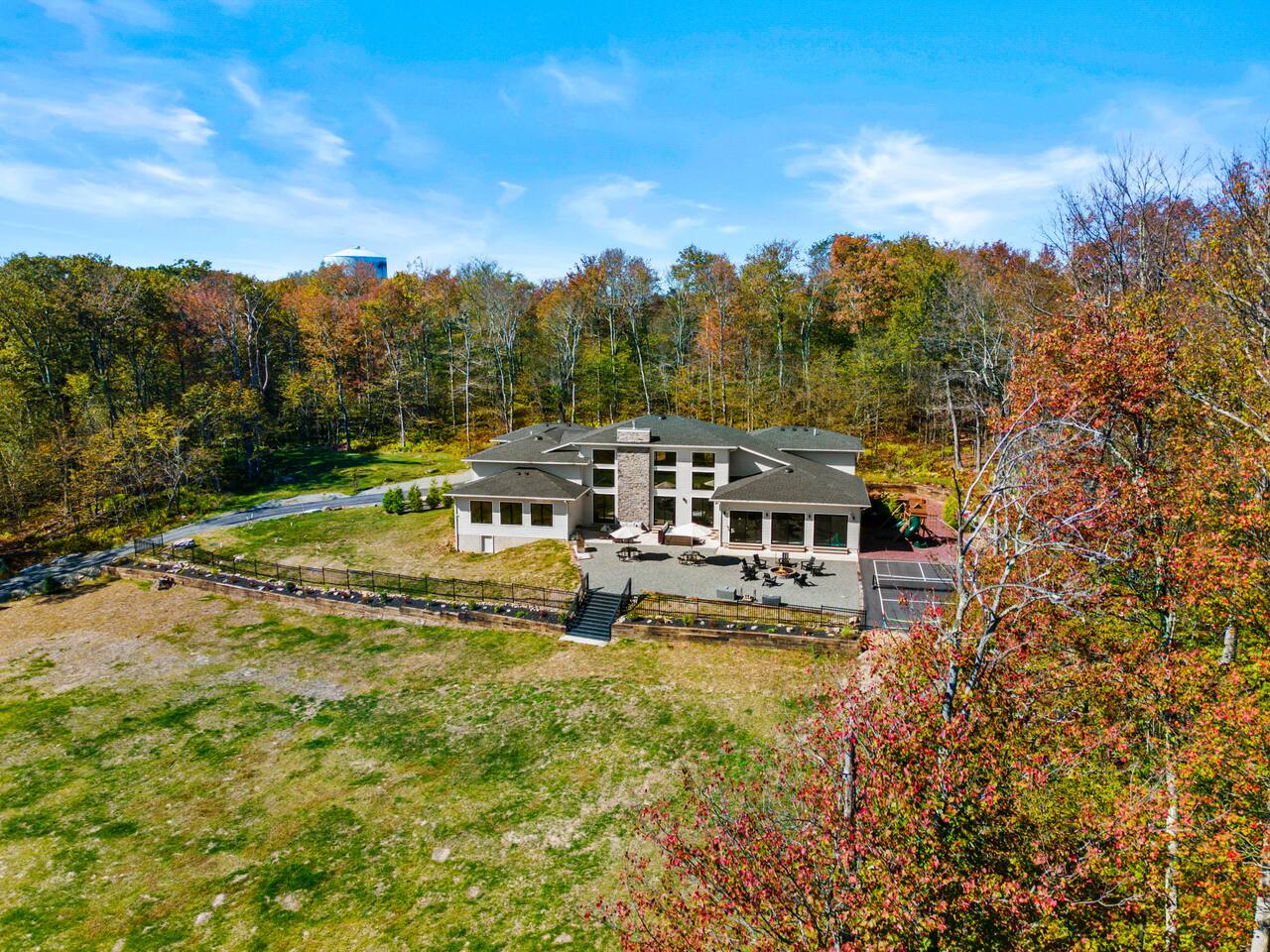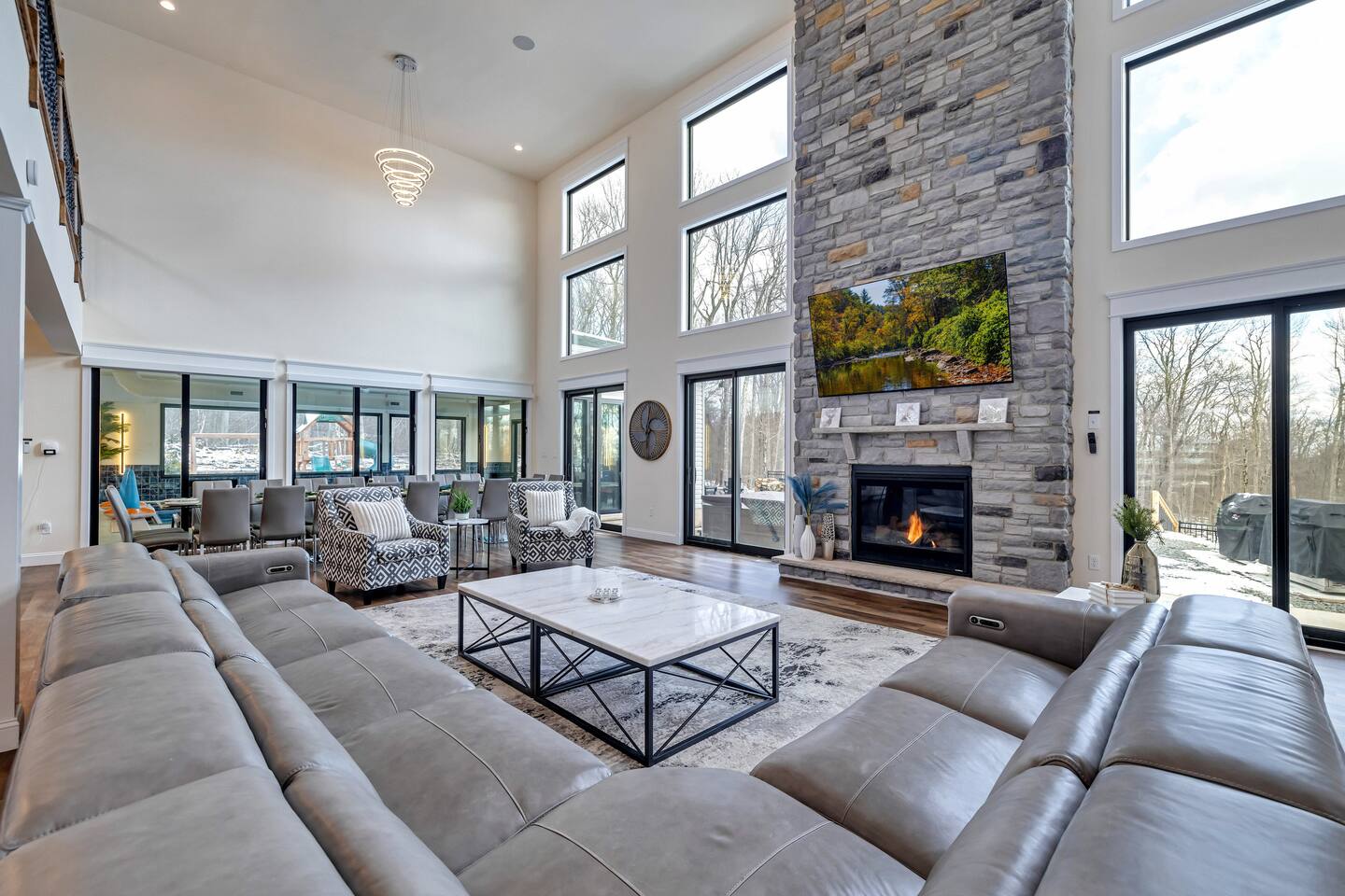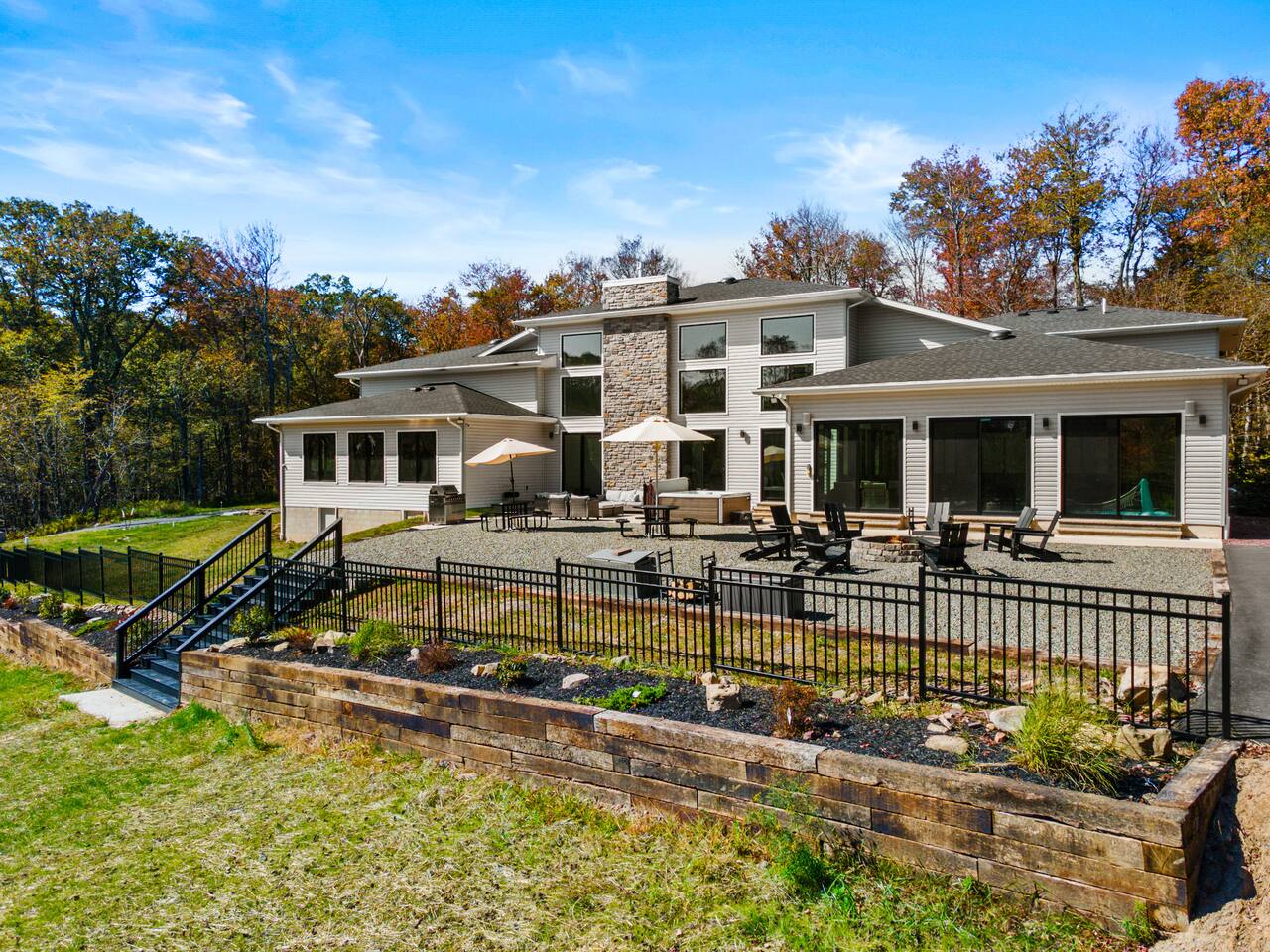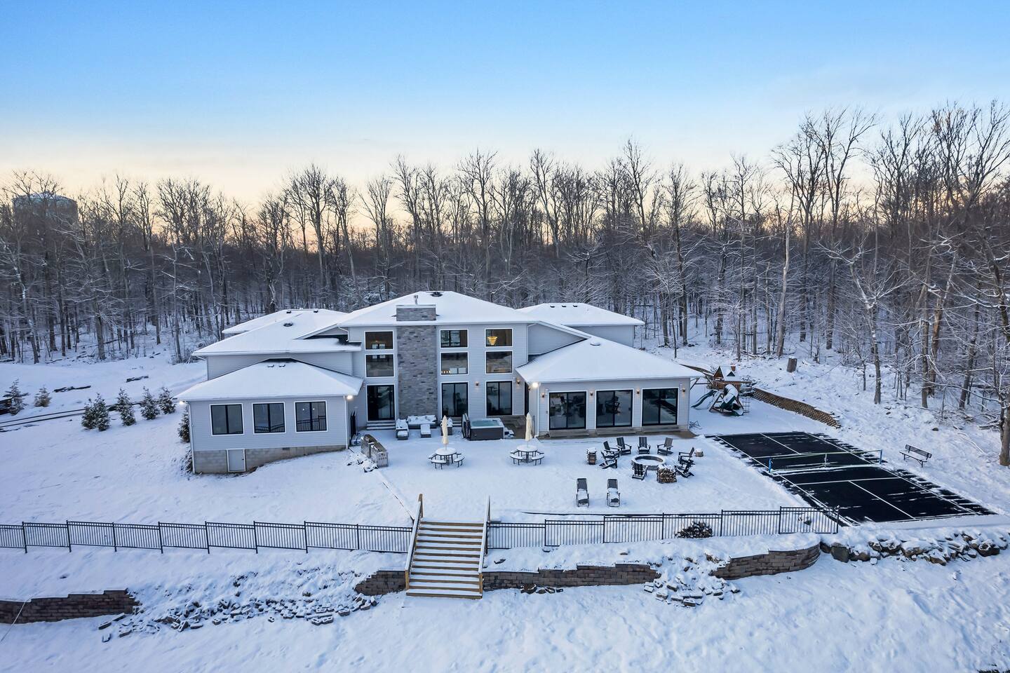 Experience The Perfect Pocono Escape—your private luxury retreat. This stunning estate offers year-round relaxation and entertainment, featuring an indoor heated pool and hot tub, a cutting-edge arcade, and a state-of-the-art 22-seat movie theater. Step outside to enjoy a second 7-person hot tub, a private walking trail, pickleball court, fire pit, and a children’s playground. True to its name, The Perfect Pocono Escape delivers an unforgettable experience in every season.