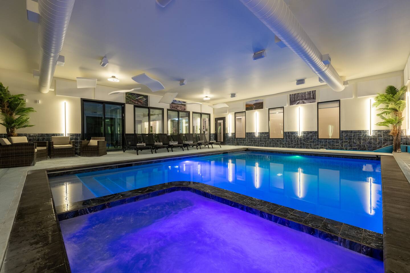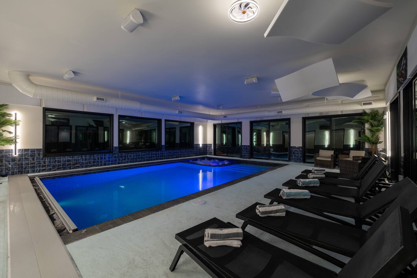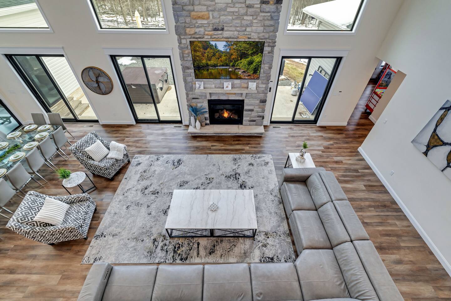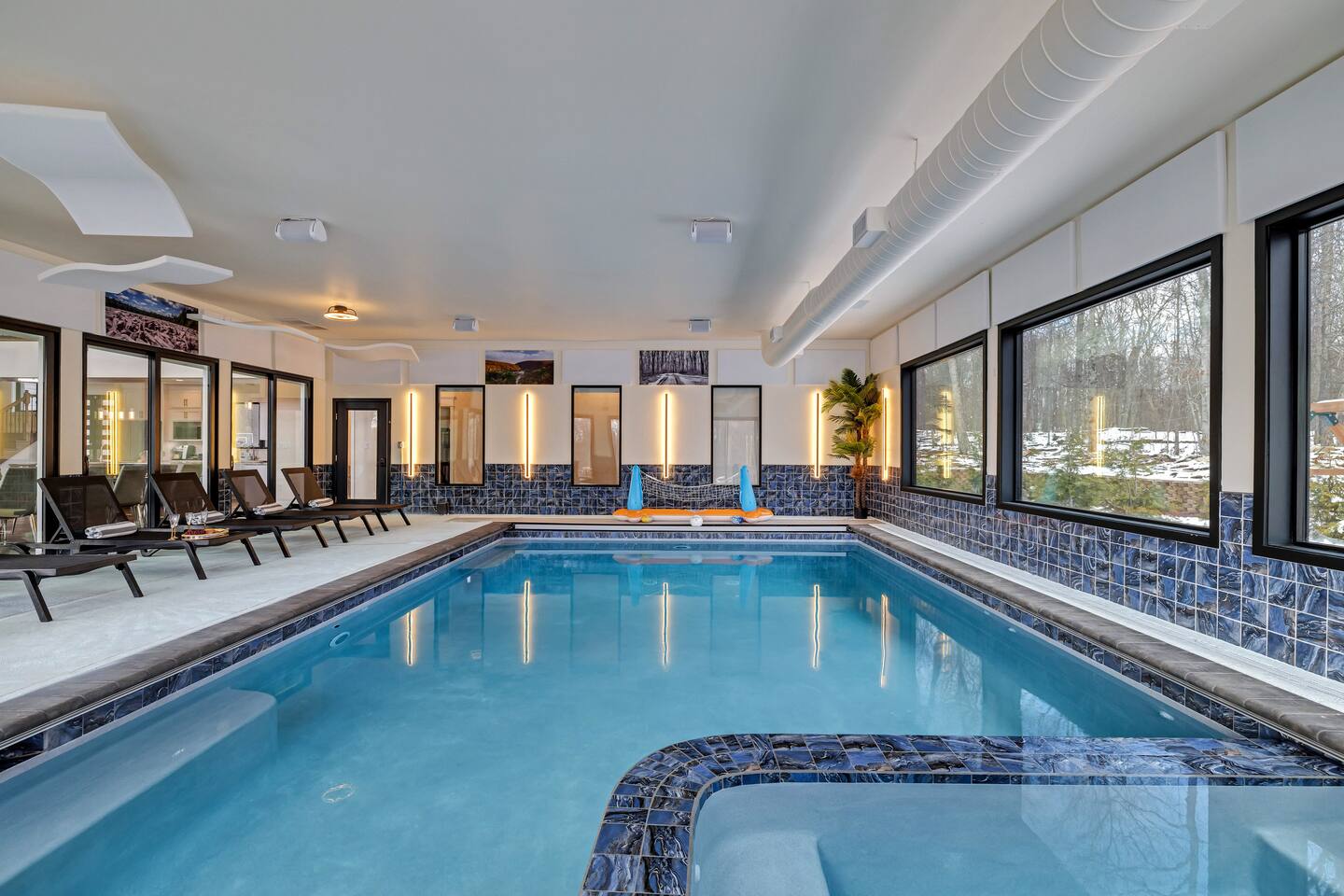 Experience The Perfect Pocono Escape—your private luxury retreat. This stunning estate offers year-round relaxation and entertainment, featuring an indoor heated pool and hot tub, a cutting-edge arcade, and a state-of-the-art 22-seat movie theater. Step outside to enjoy a second 7-person hot tub, a private walking trail, pickleball court, fire pit, and a children’s playground. True to its name, The Perfect Pocono Escape delivers an unforgettable experience in every season.