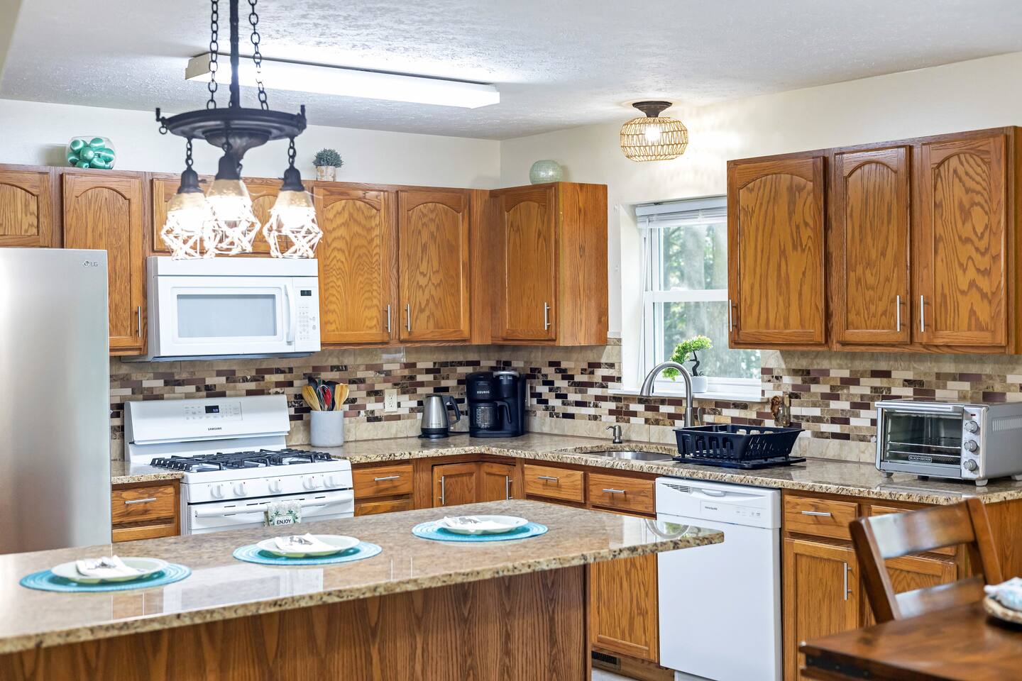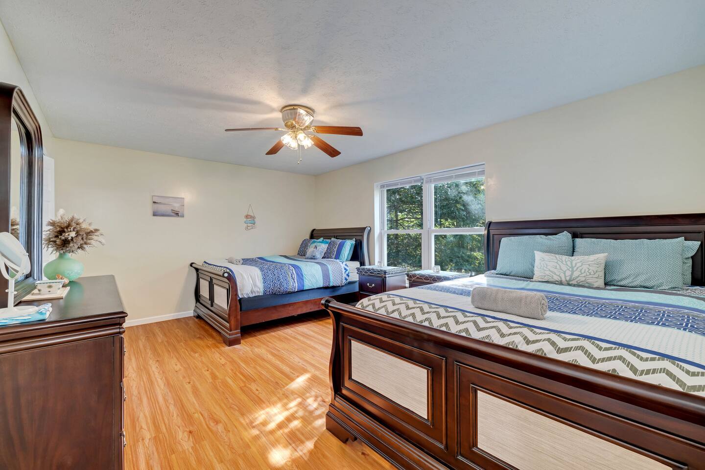 The Lakefront Pocono Escape KEY FEATURES: ☀ Sleeps 12-13 ☀ 4 Bedroom, 2.5 Bathroom ☀ Waterfront property ☀ Direct Access to Alrashed Lake - catch and release fishing from the dock of the backyard. ☀ 2 Kayak ☀ Dedicated Workspace ☀ Well Equipped kitchen ☀Garage with games ☀ Backyard Deck/Patio ☀ Fire pit, bbq/grill / hammock ☆☆ Pocono Summit is the gateway to the scenic Pocono's Mountains! ☆☆ HALLOWEEN PARTY 🍁🎃🍂 Stop by ShawneeCraft Brewing Company for their annual Halloween Party on Friday, October 31. There will be prizes and giveaways for best costumes and mummy wrapping contest. Enjoy live music by the Sol Katana Band from 7-10 p.m. Free entry for all! Within a few minutes or even 30 mins in any direction of this beautiful waterfront property, there is no shortage of things to do! Theres fun for people of all ages during all 4 seasons of the year! Winter Fun: * Camelback Mountain Resort & Snow tubing (10 miles) * Big Boulder Mountain (20 miles) * Jack Frost Ski Resort (20 miles) * Shawnee Mountain Ski (26 miles) * Blue Mountain Resort (38 miles) Make a Splash: * Kalahari Resort (2.6 miles) * Great Wolf Lodge (9 miles) * Aquatopia (10 miles) * Camelback Outdoor waterpark (11 miles) * Split Rock Resort (20 miles) All Year Fun * Pocono Manor Golf Course (4 miles) * Mount Airy Casino- (7 miles) * Pocono Premium Outlet (9 miles) * Golf N Fun (11 miles) * Camelback Mountain Adventure (11 miles) * Pocono Raceway (12 miles) * Wonderland Madhouse (mini-golf, escape the rooms, wine tasting) (19 miles) Lake & Nature Living: * Alrashed Lake ( Directly on property) * Summit Lake (1.3 miles) (can keep fish) * Stillwater Lake (3 miles) (catch & release) * Pine Tree Lake ( 5 miles) * Kurmes Preserve (5 miles) * Lake Naomi (6 miles) * Tobyhanna State Game Park- (10 miles) * Big Pocono State Park- (13 miles) * Austin Blakeslee Natural Area (15 miles) * Promised Land State Park (22 miles) * Delaware Water Gap- (23 miles) * Hickory Run State Park (29 miles) ☆☆BEDROOM ☆☆ This Lakefront Escape accommodates up to 12-13 people in a 4 bedrooms, 2.5 bath home. All bedrooms are upstairs. Bedroom 1: 1 King bed Bedroom 2: 2 Queen beds Bedroom 3: 2 Queen beds Bedroom 4: 1 Twin Bunk bed Living Room: Couch ☆☆BATHROOMS☆☆ There are 2.5 bathrooms stocked with all the essentials you need for the duration of your stay. ☆☆KITCHEN & LOUNGE☆☆ The kitchen is equipped with appliances, utensils, and cookware you need to feel right at home. This thoughtfully designed area also provides a dinning table to enjoy a nice meal with views of the lake. ☆☆GAME ROOM☆☆ In our garage we have a game room with pool, ping pong, darts, mini bowling, ax throwing and more! ☆☆ OUTSIDE SPACE☆☆ The exterior area of this home boasts gorgeous lakefront views directly from the backyard patio or deck. Whether relaxing on the dock and sipping coffee or lighting a fire during sunset, theres something for everyone. Two Kayak on the property with adult life jackets. Catch and release fishing directly from the dock. You can bring your own fishing poles as we do not provide it. Hammock for lounging. ☆☆ HOA COMMUNITY☆☆ HOA Form submitted 24 hrs before check-in, late fee of $75 if after 24 hrs. Fee also applicable for same day bookings. Throughout the year, our Playground, Basketball Courts, and Fishing Lakes remain open for use daily from 7 AM until dusk. The Swimming Lake and Pool area $5/day per person (ages 14+). Pay early with card at the office (Tue–Sat, 9 AM–4 PM) * If you are arriving or at the property on non-office business days and would like us to arrange prepaid pool entry wristbands please message us prior to your start of vacation to coordinate this for you. Failure to coordinate this will result in not being able to get wristbands on Sunday or Monday when the office is closed unless paying cash at the pool. Wristbands are required to use all amenities. The hours for these areas are as follows: Swimming Lake: 7 AM - Dusk Opens Memorial Day weekend (weekends only until 2nd week of June). The Swimming area of the lake and the pool area are open from Memorial Day until Labor Day each year. CLOSE AFTER LABOR DAY Open daily all summer starting 2nd week of June. Please note that all swimming areas are "Swim at Your Own Risk," as no lifeguards are on duty.