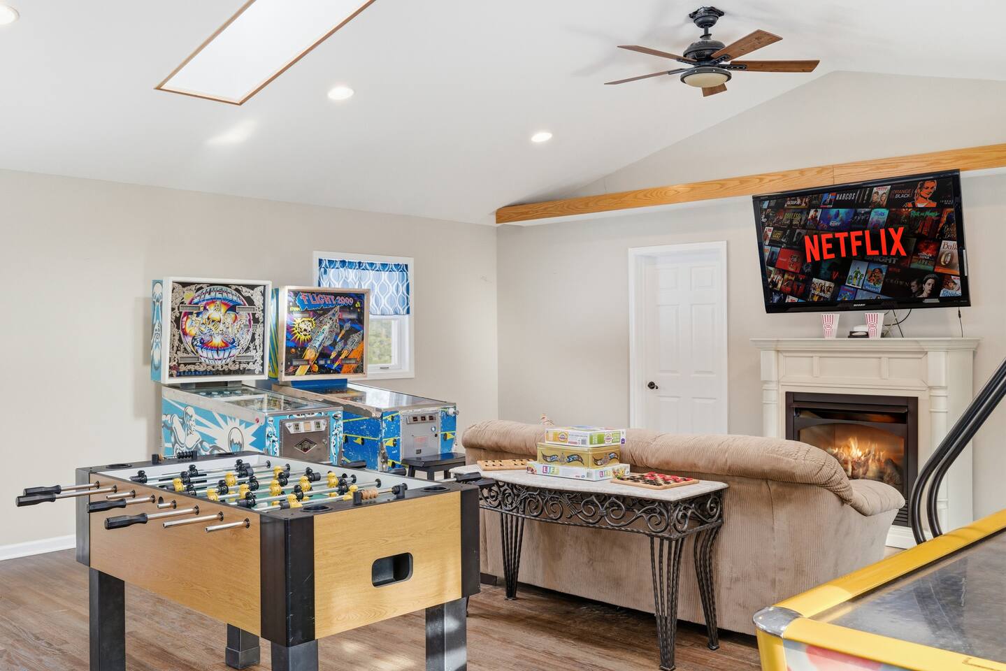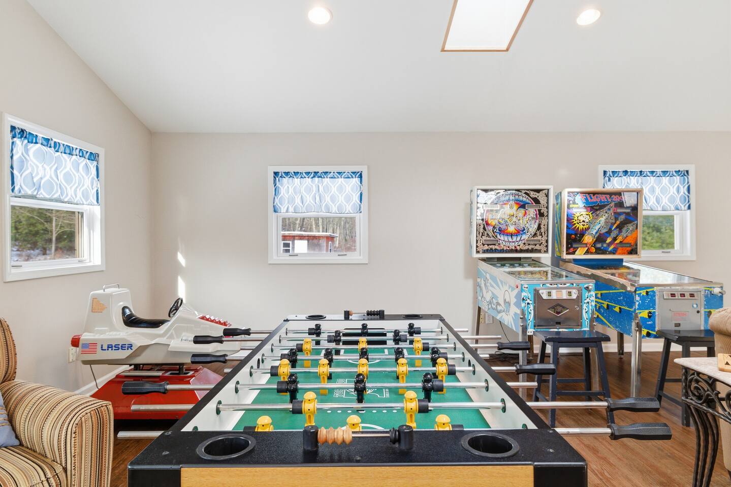 Your Fall Getaway at Rock Oak Retreat. Nestled in the Poconos on 10 private wooded acres, Rock Oak is the perfect place to experience autumn in Pennsylvania. Whether you're leaf-peeping on the trails, cozying up around the fire pit, or playing pinball in the arcade room, this home was designed for memory-making with friends, amily, and dogs — who stay for free.